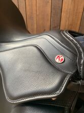 Siodło posiada: Rolki na kolana na panelach pod klapą siodła. Dodatkowe skrócone panele dla koni z krótkim grzbietem Miękko wyściełane małe kieszenie Długie pasy mocujące Ruchome zawieszenie typu V