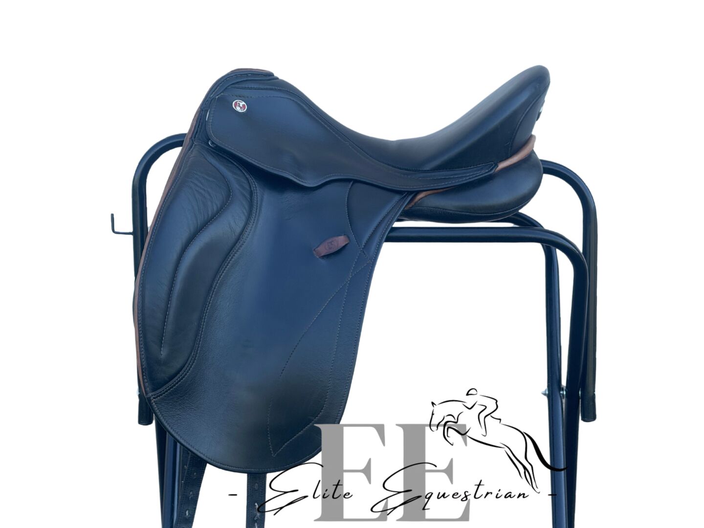 Siodło ujeżdżeniowe Kieffer Paris Exclusive 17"/32 - Na sprzedaż jest pięknie eleganckie Kieffer Paris Exclusive - wysokiej klasy siodło ujeżdżeniowe zaprojektowane z myślą o najlepszych pomocach i maksymalnej stabilności jeźdźca. Głębokie siedzisko wspiera prawidłowy i cichy dosiad, a miękko wyściełane, anatomicznie ukształtowane rolki kolanowe zapewniają bezpieczne wsparcie dla nogi jeźdźca. Siodło wykonane jest z miękkiej, wysokiej jakości skóry, która gwarantuje zarówno komfort, jak i długotrwałe użytkowanie. Jego konstrukcja pozwala koniowi na swobodne poruszanie się, podczas gdy jeździec pozostaje jak najbliżej grzbietu konia. Podobnie jak większość modeli Kieffer, ten posiada regulowaną na zimno płytkę wpustową i wełnianą wyściółkę, dzięki czemu można go łatwo dopasować do różnych kształtów pleców.