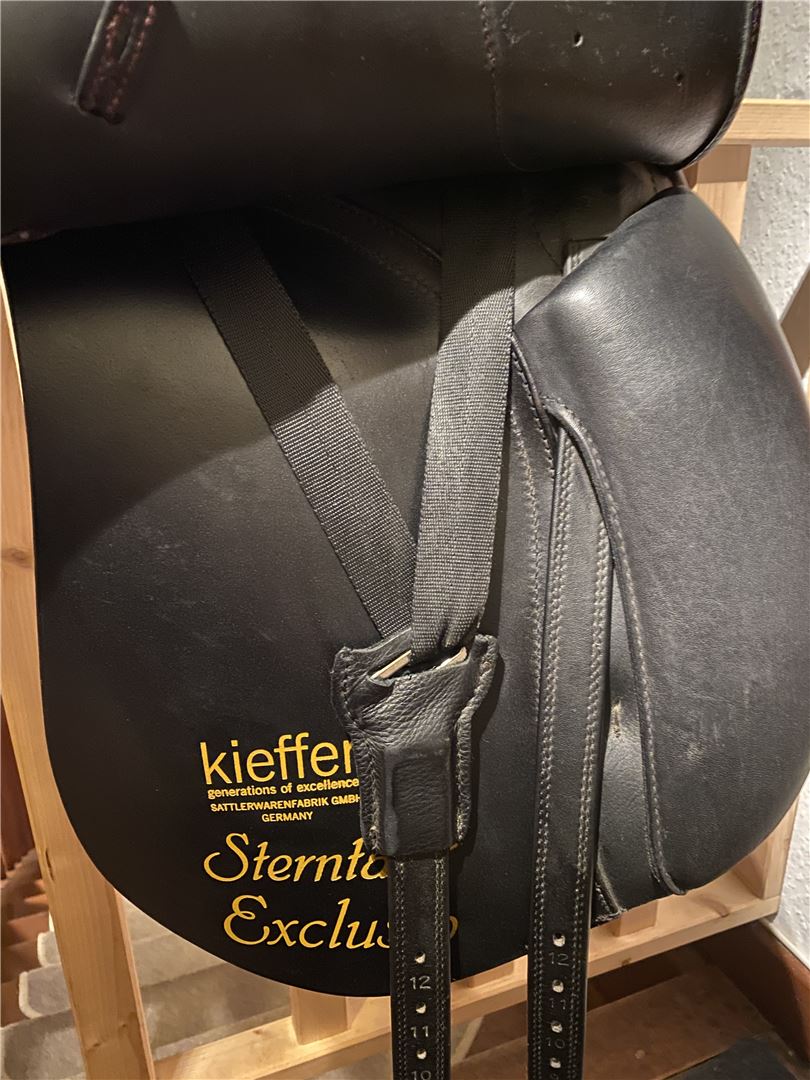Siodło ujeżdżeniowe Kieffer Sterntaler Exclusiv - Na sprzedaż jest siodło Kieffer w wersji Sterntaler Exclusiv w oryginalnym stanie. Czerwone przeszycia i aplikacje sprawiają, że przyciąga wzrok! Szerokość wlotu: 31 cm Siedzisko: 17,5".