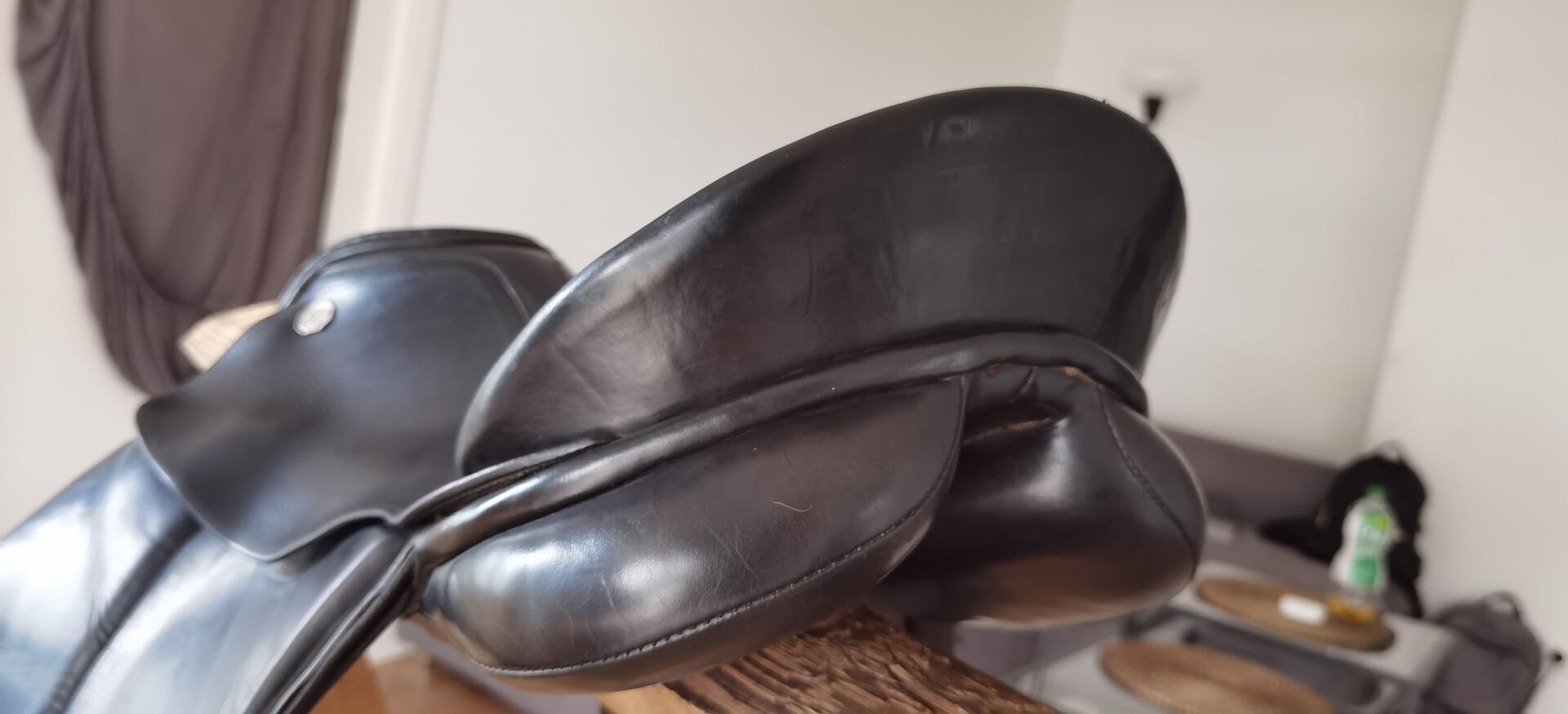 Rozmiar siedziska 1, co odpowiada 17 cali. Popręg stabilny, paski do popręgu nienaruszone. Długość około 45cm. Siedzi się bardzo wygodnie. Klasyk.