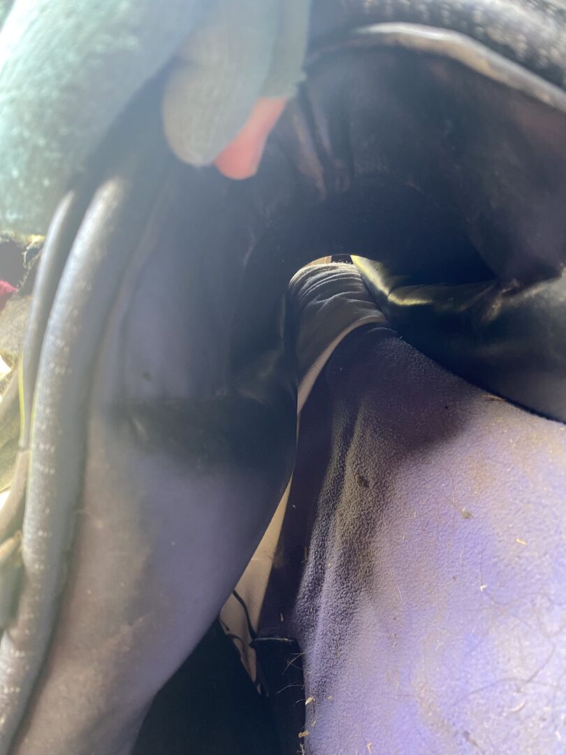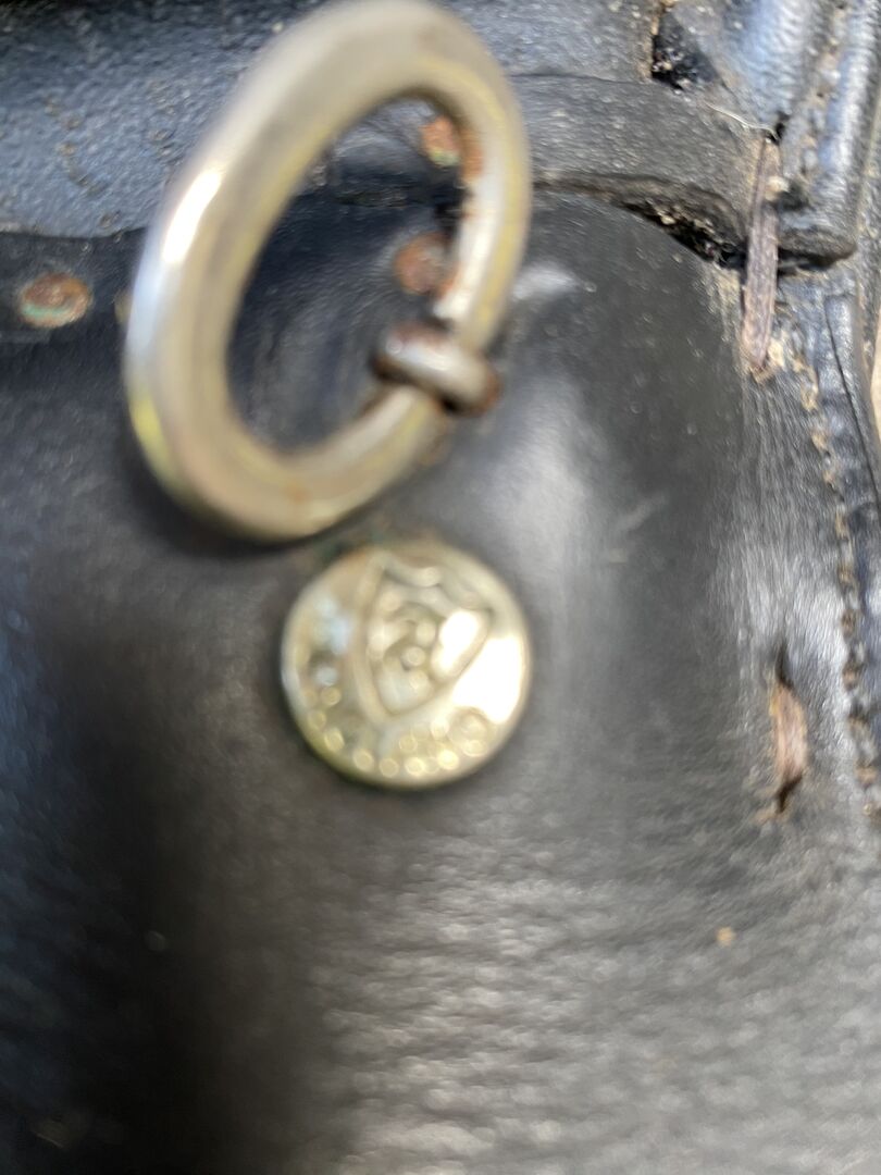 Dressage saddle 17 inch seat, black leather D to D 8 inches, 4 1/2 inches on inside of pommel. Stirrup bar is stamped with M , so comes up as medium saddle .