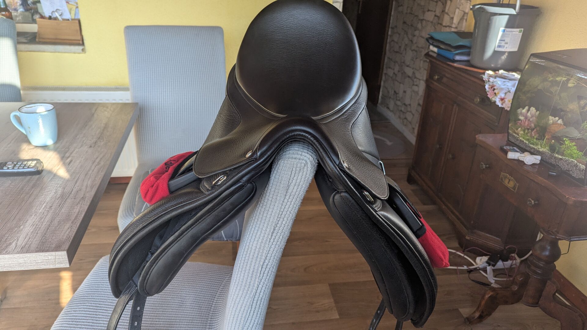 Oddaję siodło tylko dlatego, że mój nowy rymarz powiedział, że nie pasuje do mojego konia. Próbowała między innymi czegoś innego, ale moja klacz nadal wyraźnie pokazuje, że nie chce jeździć w tym siodle. Zmieniono V-girthing, który może być odwrócony przez rymarza i teraz jest ustawiony prosto w dół. Siodło jest sprzedawane bez akcesoriów. Powierzchnia siedziska to 17,5, a szerokość łęku to MW.
