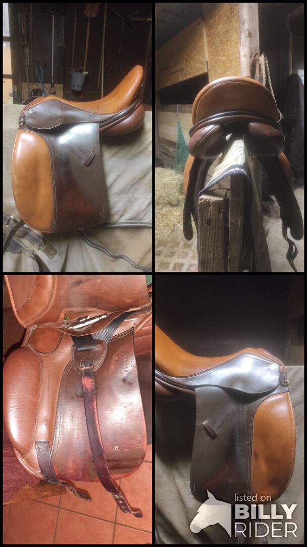 Massimo Dressage II Rozmiar siedziska 17", komora 33 mm (mierzona od końca łęku do końca łęku - patrz zdjęcie). Dwukolorowe, ciemno- i jasnobrązowe. Powierzchnia styku 41 cm