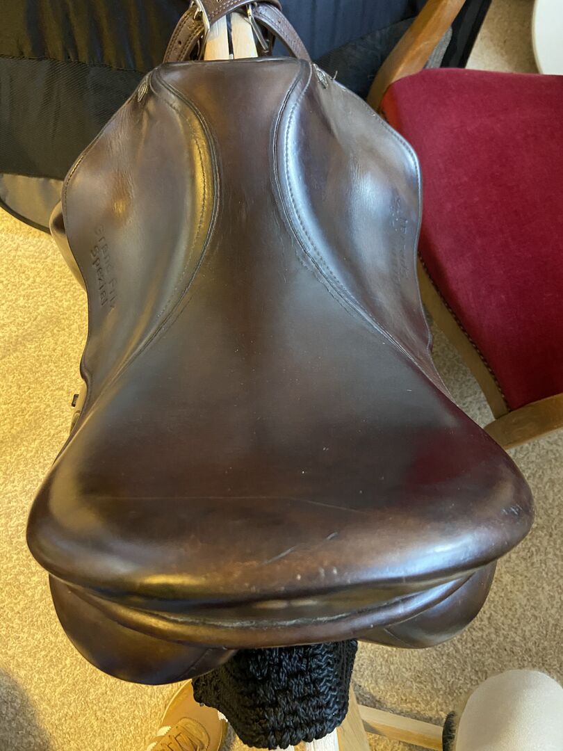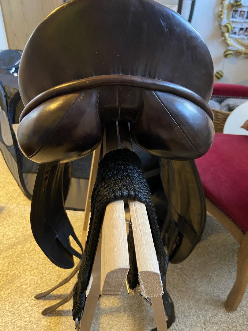 Siodełko ma niewielkie ślady użytkowania, ale jak na swój wiek wygląda świetnie. Posiada francuskie panele, dzięki czemu nadaje się do krótszych grzbietów koni. Wysokie mostki na panelu mono zapewniają bardzo dobre trzymanie w tym superwygodnym siodle.