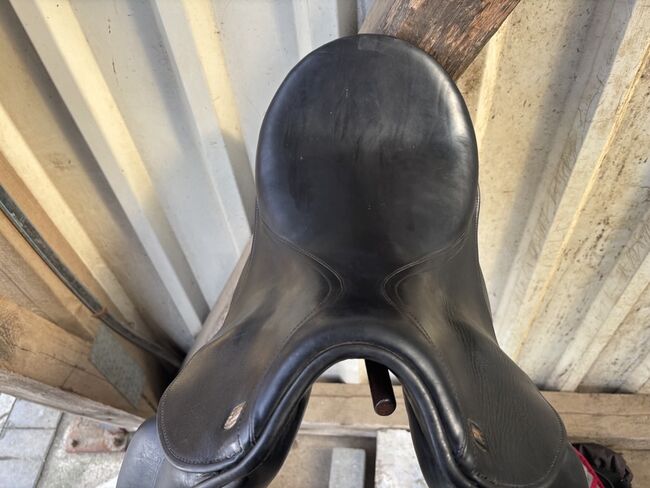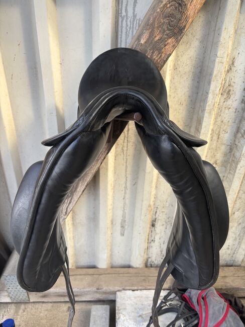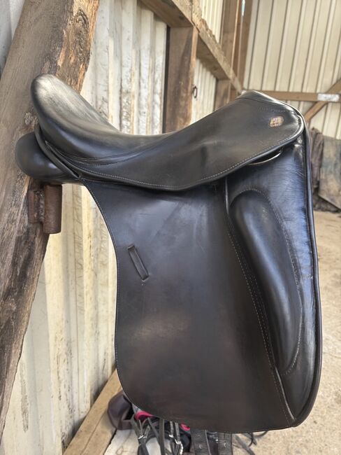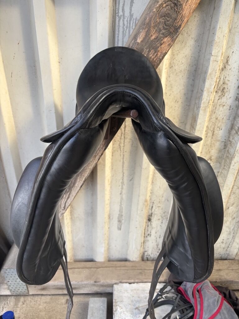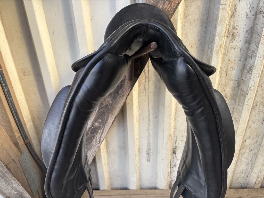 Siodło ujeżdżeniowe MK - Na sprzedaż 17-calowe siodło ujeżdżeniowe od MK. Oferuje bardzo wygodne siedzisko. Odpowiednie dla wysokiego podbicia. Bardzo miękko wyściełane.