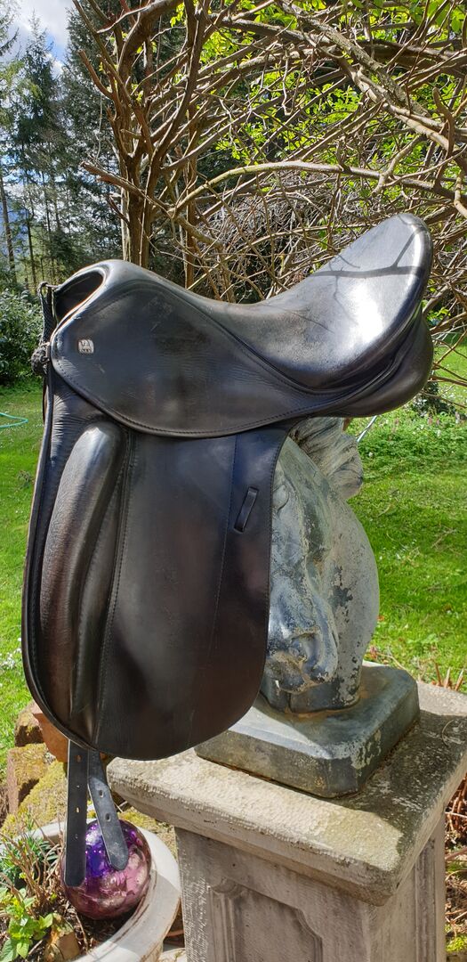 Siodło ujeżdżeniowe Monoblatt Markus Krehan 16,5 cala KW 32 - Ze względu na zmianę konia sprzedajemy nasze siodło ujeżdżeniowe, mono klapowe z głębokim wygodnym siedziskiem z mocnymi panelami bananowymi Markusa Krehana (rymarza z Tutzing) Stan używany przez 1 jeźdźca, bez wad Rozmiar 16,5 cala KW 32 W przypadku pytań prosimy o kontakt mailowy lub 0151/27500037