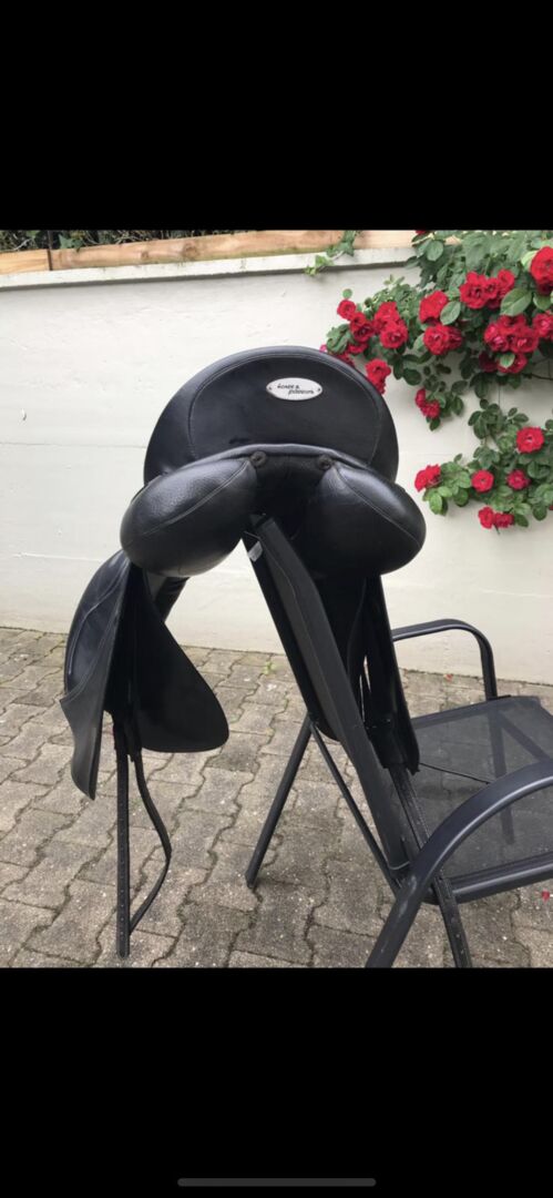 Siodło ujeżdżeniowe na sprzedaż - Sprzedaję siodło ujeżdżeniowe w dobrym stanie, ze względu na rezygnację z jazdy konnej. Siodło zapewnia szczególnie dobre siedzenie dzięki swojej wyściółce.
