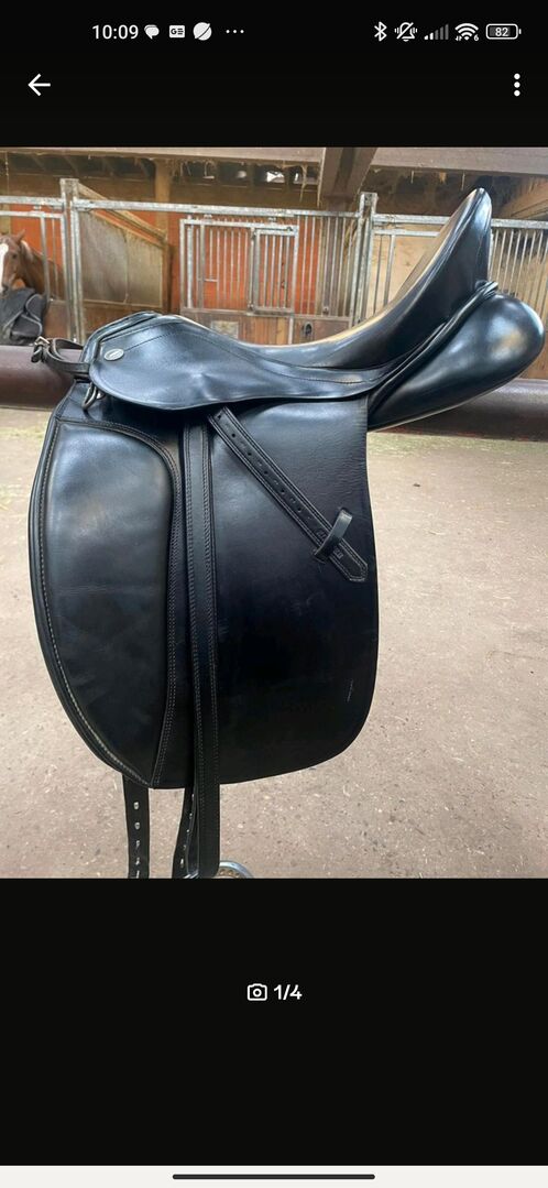 Siodło ujeżdżeniowe na sprzedaż - Sprzedam moje zadbane siodło ujeżdżeniowe Hemano, porównywalne z modelem Kentaur Champion 1, z siedziskiem 17,5 cm i komorą 33 cm. Komora była poszerzana przez rymarza w zeszłym roku. Panele zostały również sprawdzone i wyściełane w listopadzie 23 roku