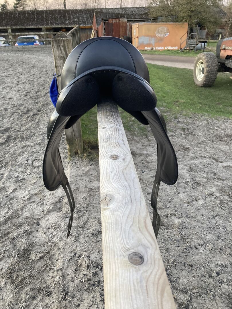 17.5 in black nick dolman monoflap dressage saddle mw. Serge panels, very lightweight, excellent condition and well looked after. Can be widened to a wide or narrowed to a medium.