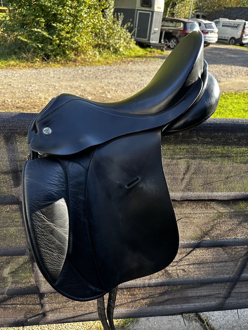 Siodło ujeżdżeniowe Niedersüß / Medley - Oferuję tutaj moje siodło ujeżdżeniowe, z następującymi danymi : Siodło ujeżdżeniowe Niedersüß / Medley 17 wersja Hofsattlerei 170 147 VMK 143 popręg + popręg V skóra samoprzylepna pokrowiec na siodło Rolki na rzepy Siodło ma 2 lata Strzemiona mogą być również dostarczone na życzenie!