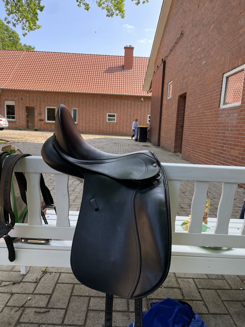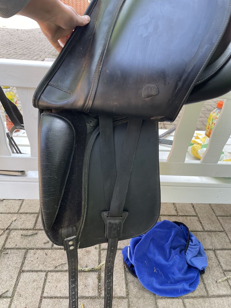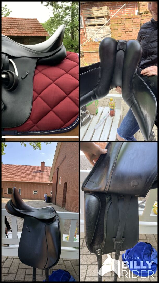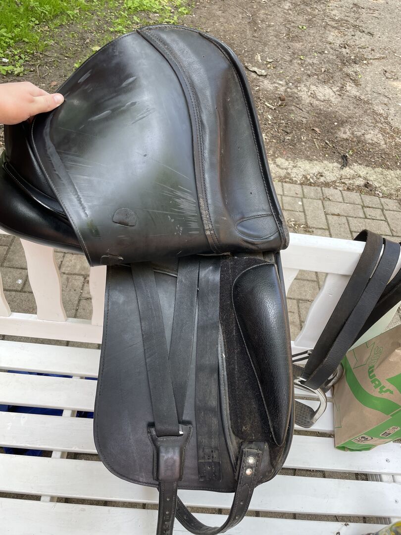 Siodło ujeżdżeniowe od dt Saddelary - Siodełko jest w dobrym stanie, ale ma kilka małych dziwactw, które można zobaczyć na zdjęciach. W razie dalszych pytań proszę o kontakt.