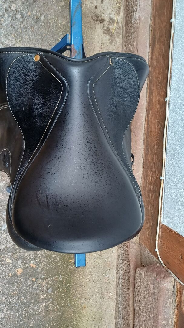 Siodło ujeżdżeniowe od Sattelglück - Sprzedaję moje piękne siodło ujeżdżeniowe od Sattelglück z powodu zmiany siodła. Model Florestan 2 jest szczególnie odpowiedni dla koni o szerokim grzbiecie i okrągłej klatce piersiowej. Mała huśtawka w tylnej linii. - Wymienna płyta wpustowa. Obecnie szerokie (34/35) - Strzemiona na rzepy - Zmienne opasanie, np. podwójne V może być zmieniane przez jeźdźca - Raczej płaskie siedzisko zapewniające dużą swobodę ruchu - Specjalne panele dla swobody kłębu