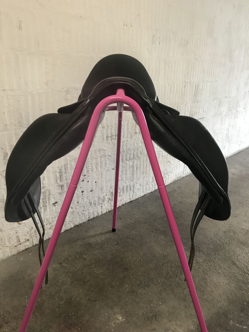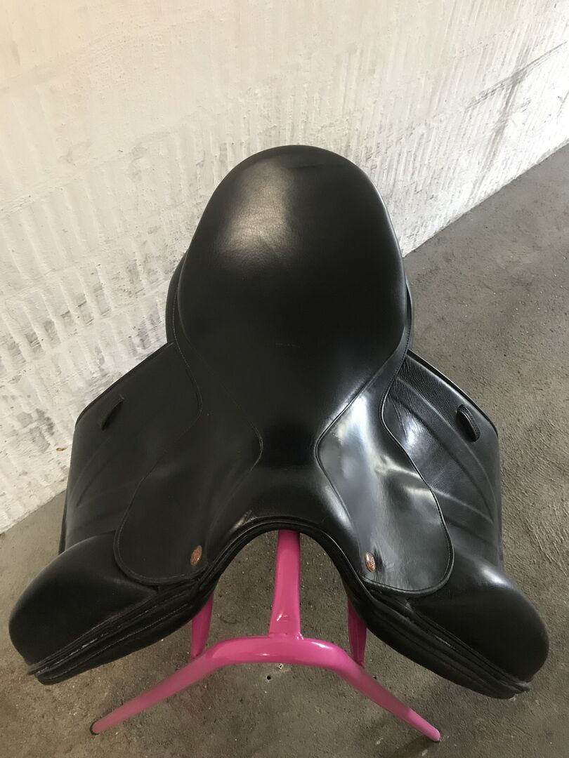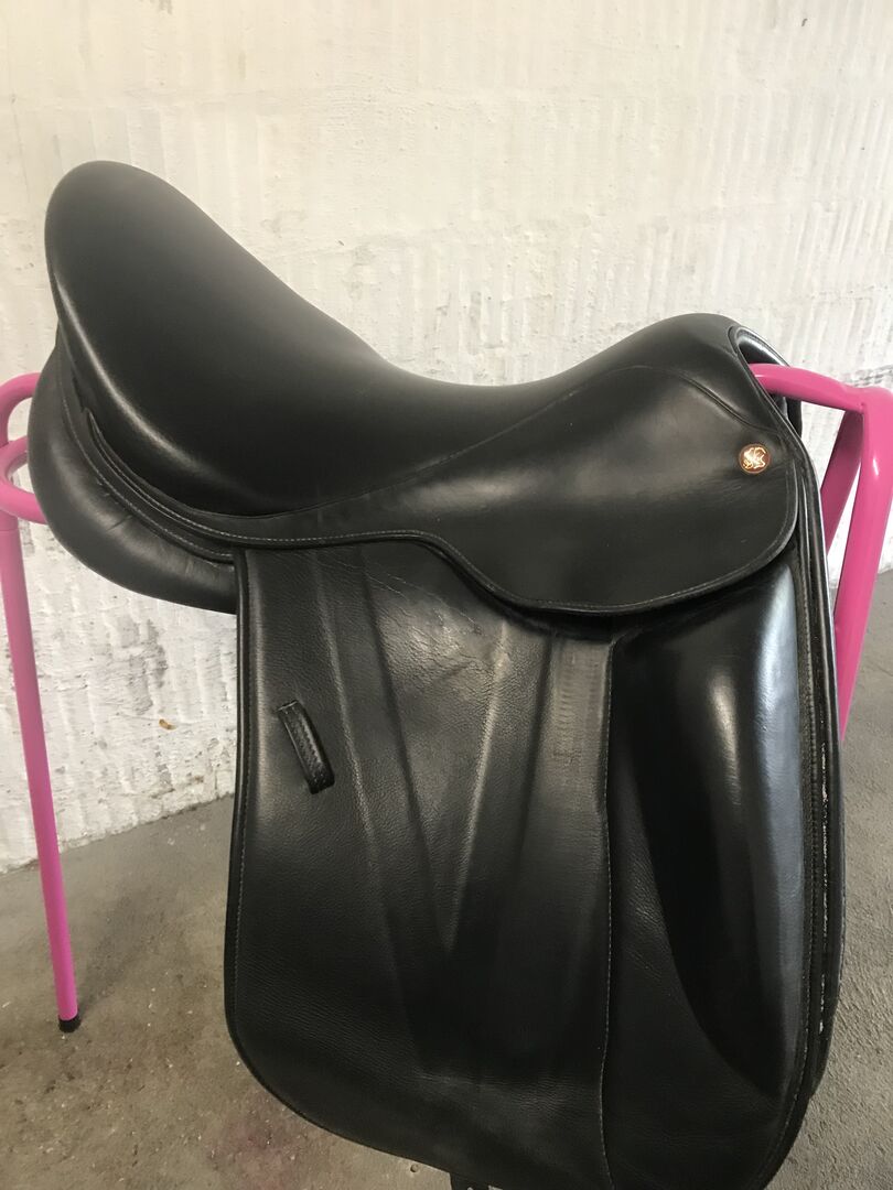 Dressursattel von SCS (Sattlerei Clemens Santschi GmbH) Farbe: Schwarz Sitzgrösse 17,5 Zoll Sattelgurt 75cm 2x Steigbügelriemen Grösse 160