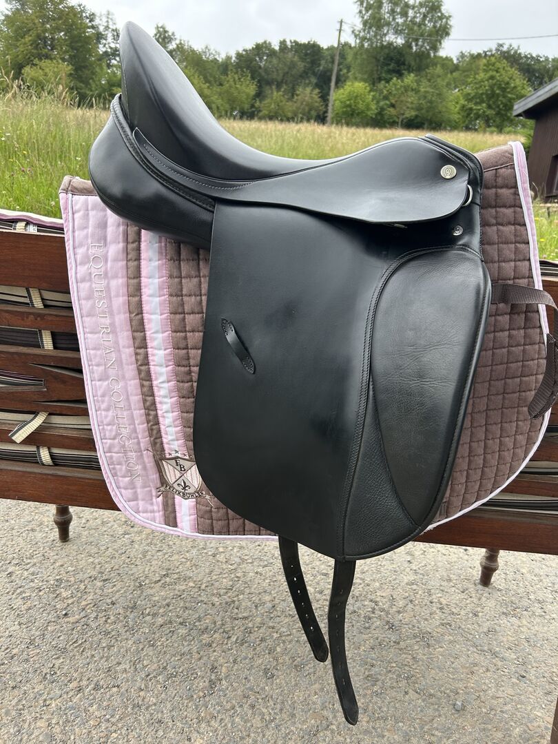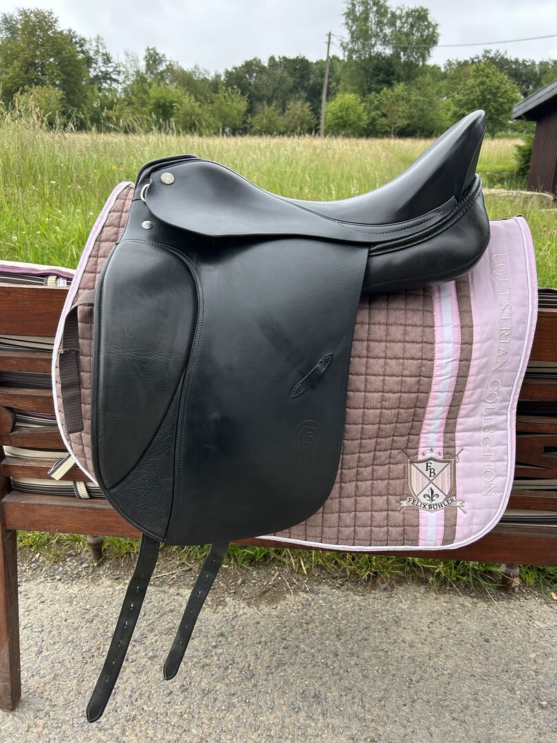 Siodło ujeżdżeniowe Otto Schumacher Solution S - Na sprzedaż jest bardzo dobrze utrzymane siodło ujeżdżeniowe Otto Schumachera. Idealne dla wąskiego grzbietu konia z wysokim kłębiem. Siodło posiada płytę wpustową Sprenger, którą można regulować w dowolnym momencie (możliwa szerokość wpustu od 26 do 36) oraz panel z wełny syntetycznej.