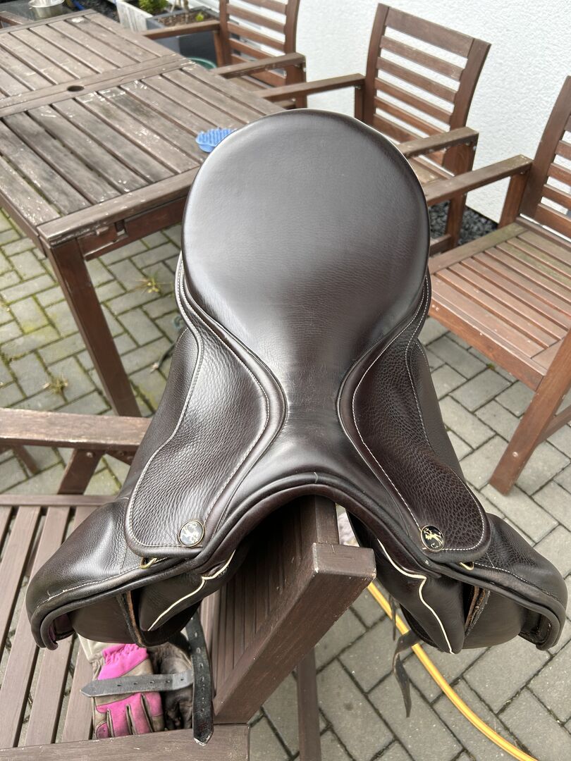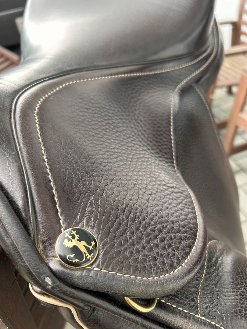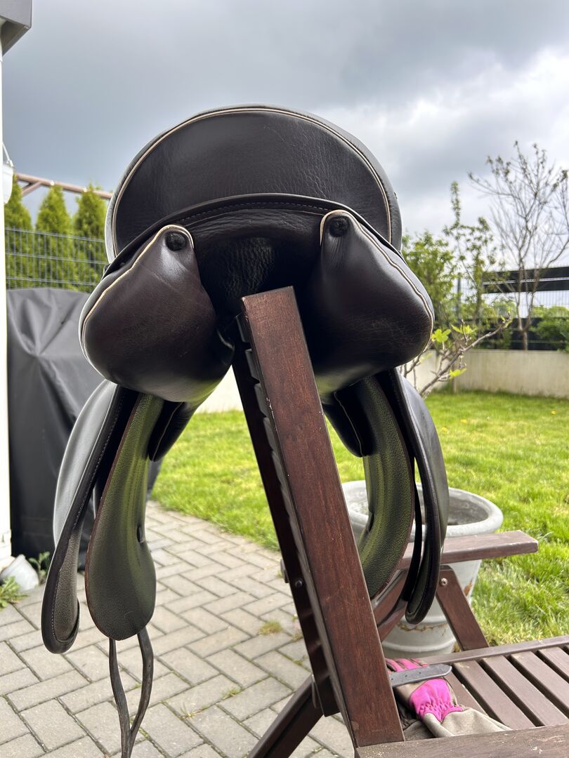 Siodło ujeżdżeniowe Palatina (Summer Basis) super miękkie! - Na sprzedaż jest piękne ciemnobrązowe siodło ujeżdżeniowe Palatina. Niestety, ten luksusowy producent siodeł już nie istnieje. Palatina była popularną niemiecką firmą, która produkowała wysokiej jakości siodła na zamówienie. Jakość skóry jest nie z tego świata.