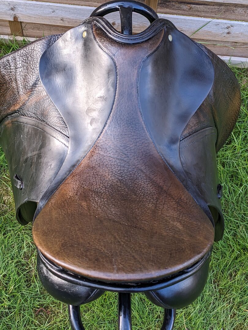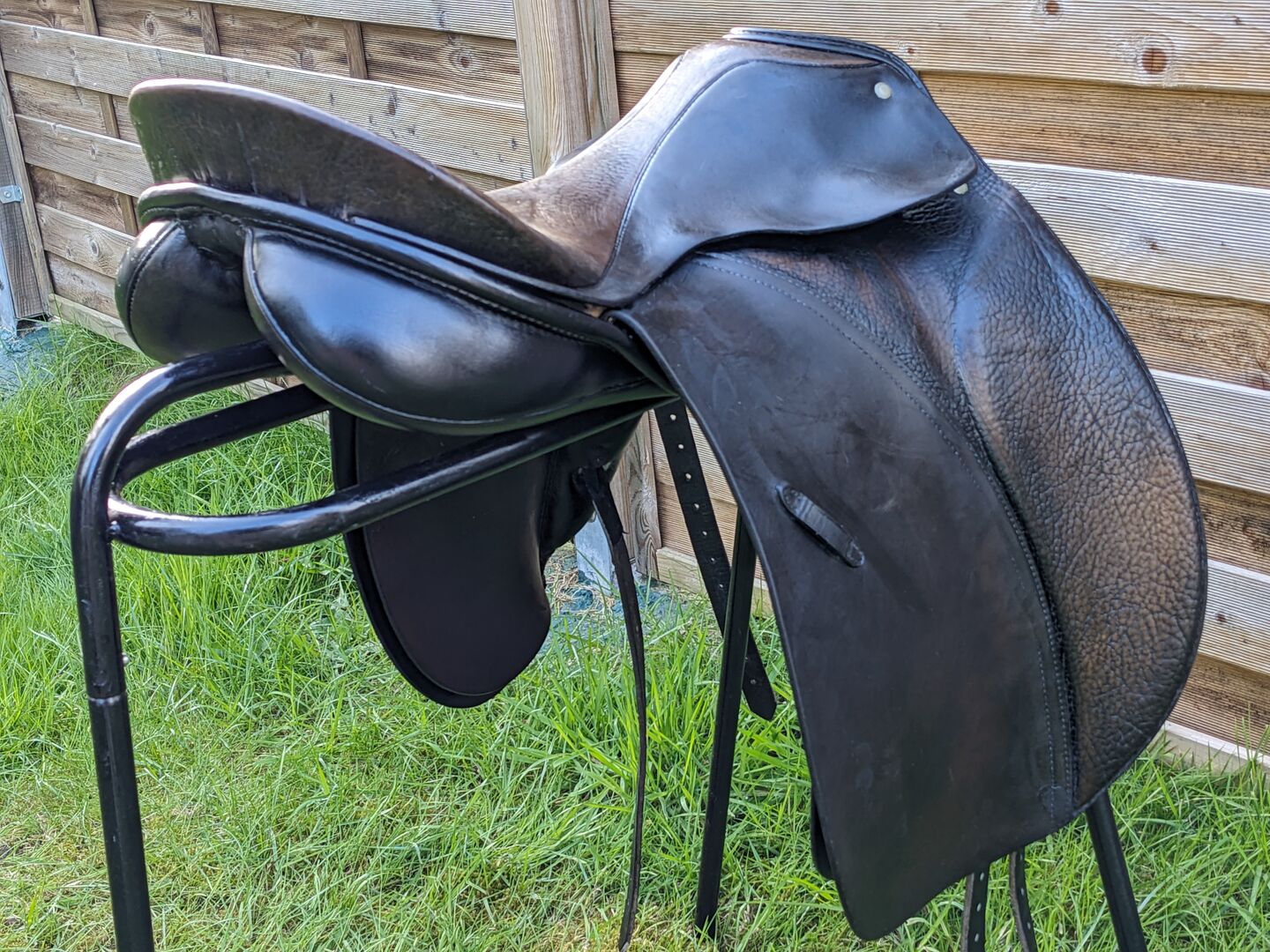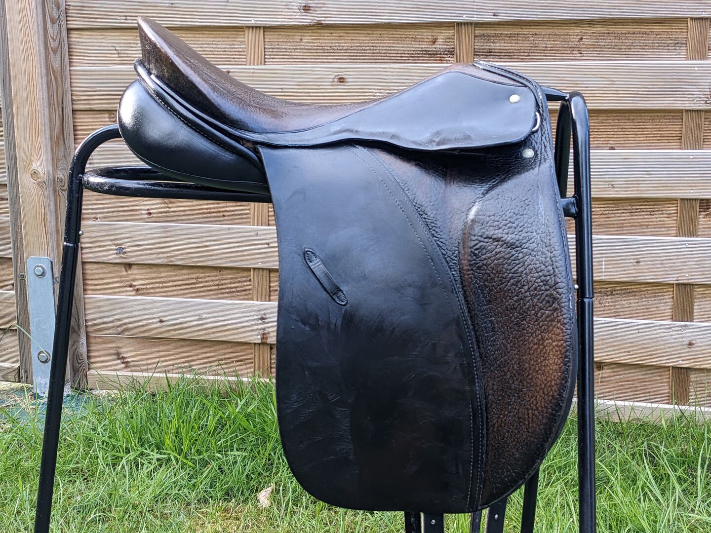 Siodło ujeżdżeniowe Passier 17 cali brązowe, nowe panele i wyściółka - Super przyjazne dla konia siodło do pierwszych kroków pod jeźdźcem. Jak zwykle w siodłach Passier, szerokość łęku jest regulowana bezstopniowo od bardzo wąskiego do bardzo szerokiego w dowolnym momencie. Panele zostały całkowicie odnowione cztery miesiące temu! Bardzo dobrze leży na różnych koniach. Szeroki kanał kręgowy. Trochę starszy, ale w pełni nienaruszony. Idealny do włamania. W razie pytań proszę pytać :)