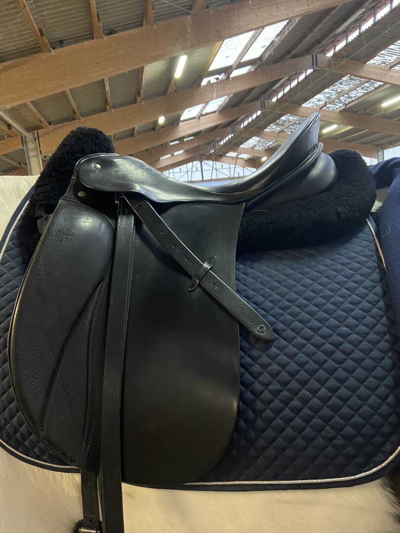 Marka Passier - Grand Gilbert Hanover Był regularnie sprawdzany i jakiś czas temu został ponownie wyścielony. Szerokość zatoki 28,5 Cale -17,5 Siodło może być regulowane przez rymarza.