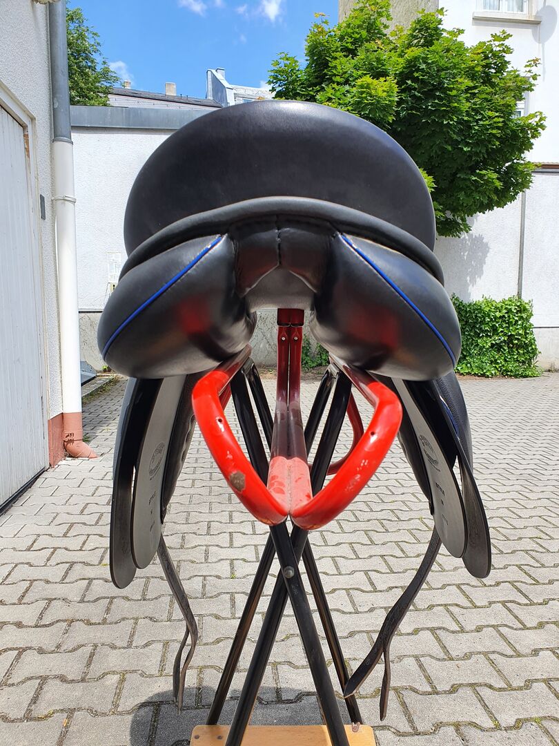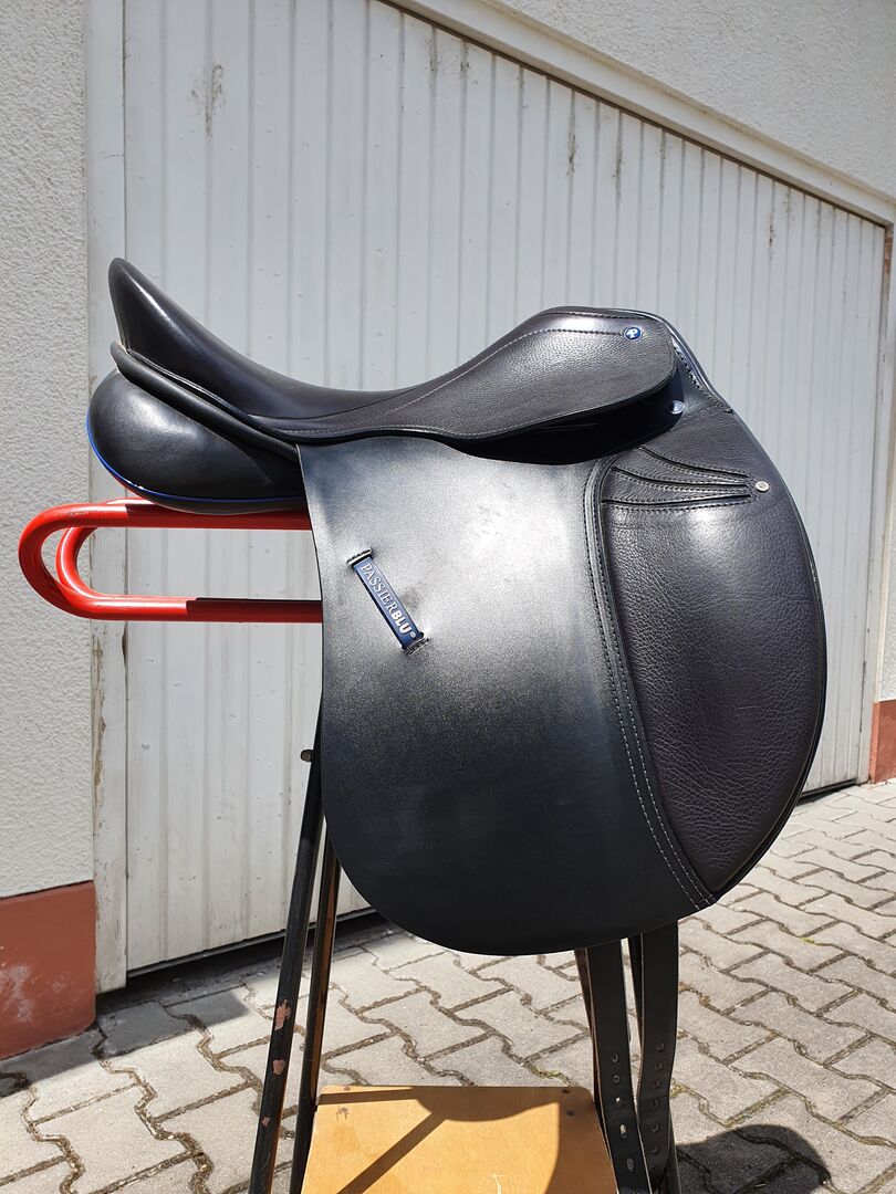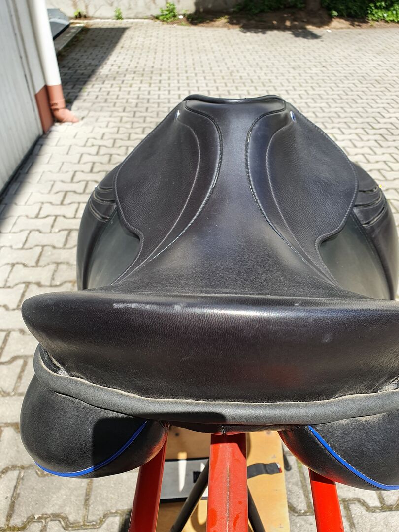 Siodło ujeżdżeniowe Passier Blu rozmiar 16 - prawie jak nowe - Do sprzedania rzadko używane siodło ujeżdżeniowe Passier Blu zakupione w 2020 roku, ponieważ koń, dla którego zostało zakupione, ma obecnie zupełnie inną linię grzbietu. Informacje od Passiera na temat siodła: Skóra Europejska skóra bydlęca Siedzenie i panele: skóra Selloil; Wstawki na kolanach: skóra Selloil z kryształami Premium i wstawkami z lakierowanej skóry; małe klapy siodłowe: miękko podwojone skórą Selloil; panele z klinem i z przodu dużej klapy siodłowej: wstawka z niebieskiej skóry patentowej
