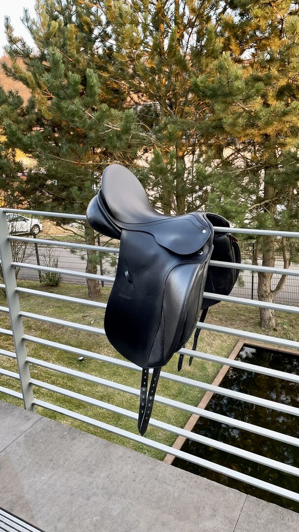 Siodło ujeżdżeniowe Passier GG Extra 17 cali od 2020 roku - Witam, Sprzedaję siodło ujeżdżeniowe Passier. Model GG Extra w rozmiarze 17 cali. Dostępna jest faktura i oryginalne dokumenty od firmy Passier. Siodło kupiłam bezpośrednio u rymarza we wrześniu 2020 r., ale używam go dopiero od stycznia 2021 r. (z powodu kulawizny mojego konia). Siodło jest bardzo ładne i lekkie, można w nim siedzieć bardzo blisko konia, a mimo to ma się dobre siedzisko i dużo miejsca na nogi.