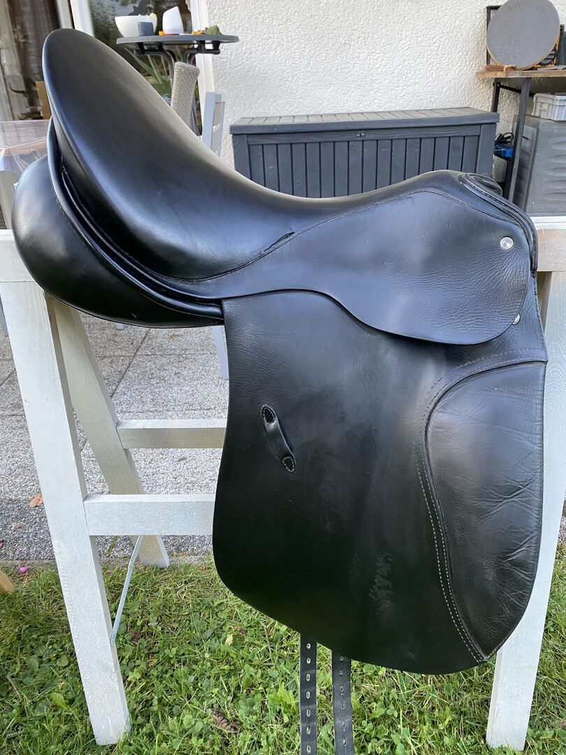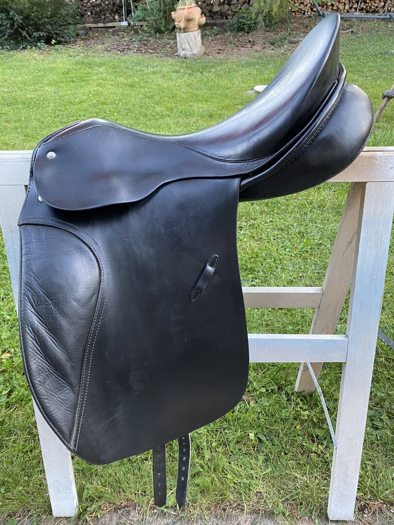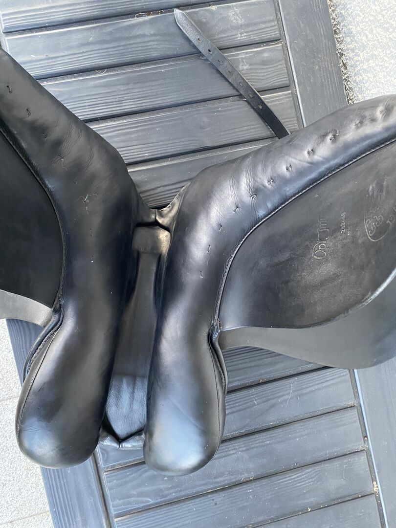 Siodło ujeżdżeniowe Passier Optimum 17,5 cala - Sprzedaję moje siodło ujeżdżeniowe firmy Passier model Optimum, ponieważ nie pasuje już na mojego konia. Było założone na wąsko zbudowanego wałacha z wysokim kłębiem. Pasowało bardzo dobrze, ale w pewnym momencie zabrakło miejsca na kłębie, który teraz jest bardzo wyraźny. Siodło jest w dobrym stanie z małym pęknięciem na siedzisku (patrz zdjęcie). (patrz zdjęcie). Kupiłem go z drugiej ręki i urósł minimalnie w ciągu 2,5 roku. I używałem go dużo. Można to naprawić u rymarza, jeśli komuś to przeszkadza. Ja nie chciałem, bo przyszyłby mi kawałek skóry, a to by mi się nie podobało.