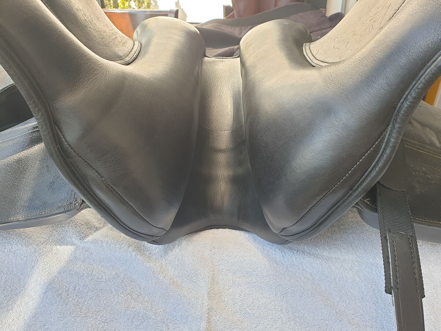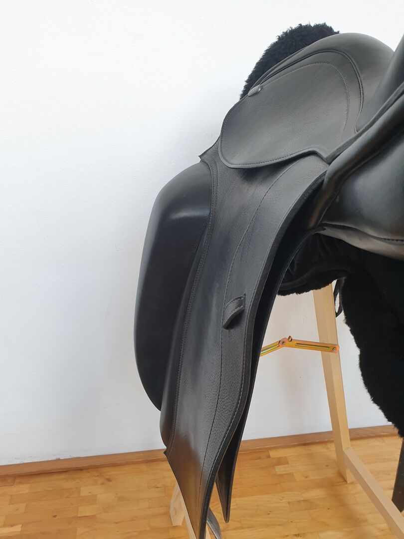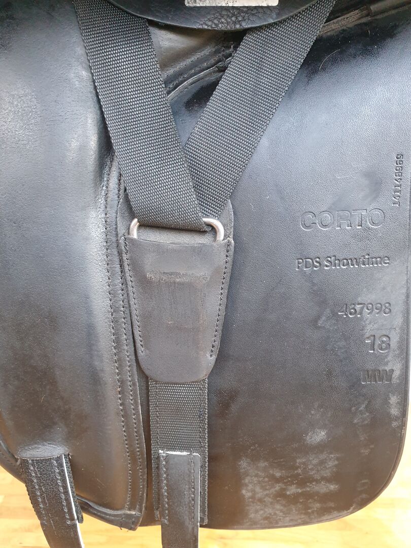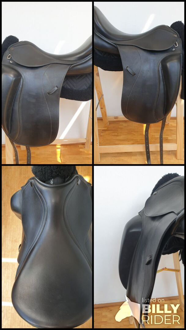 Siodło ujeżdżeniowe PDS Showtime Corto, 18". - PDS Siodło ujeżdżeniowe Showtime, XCH Gullet System, Corto, MW, 18". Stan: "Używany". Wysyłka paczką DHL do 10 kg. Oto ukochane siodło ujeżdżeniowe na sprzedaż. Nie był używany przez 4 lata i w tym czasie był przechowywany w suchym miejscu w domu. To siodło nie spadło i nie uległo wypadkowi podczas jazdy konnej. Skóra jest całkowicie nienaruszona i była regularnie pielęgnowana, w tym przez ostatnie 4 lata. Ślady użytkowania widoczne są głównie na skórach strzemion. Ci, którzy lubią dołączone klocki kolanowe, poczują się w tym siodle jak w domu. System XCH Gullet ułatwia dostosowanie wypustów do zmian zachodzących u konia. Ponadto powierzchnia styku może być wyściełana i regulowana przez rymarza w zwykły sposób. Corto oznacza, że powierzchnia siodła jest lekko skrócona (kojarzy się z francuskimi poduszkami).