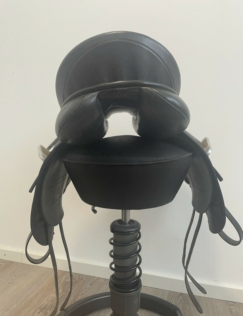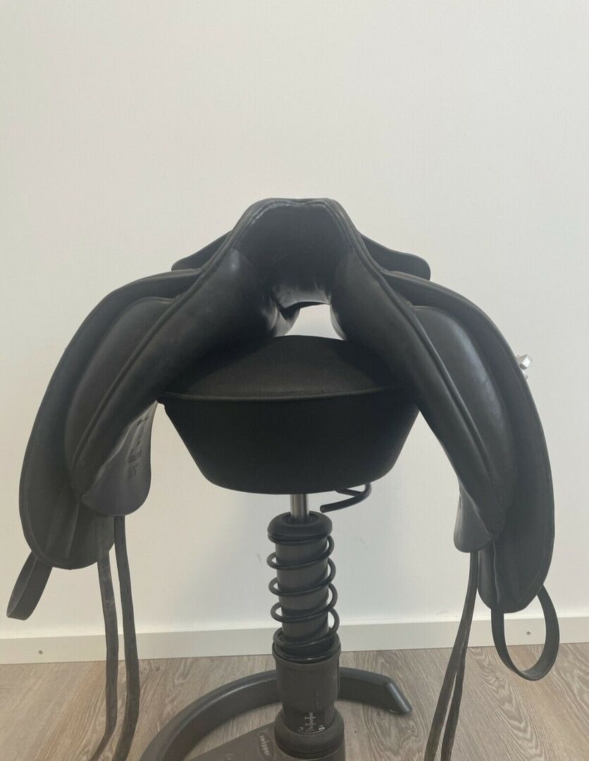 Siodło jest w bardzo dobrym stanie i zadbane. Ma szeroki kanał kręgowy. Jeździec siedzi głęboko w siodle, ma przyjemny naparstek, który nie jest restrykcyjny. Poduszki obecnie są jeszcze w dobrym stanie, siodło można regulować bez problemu. Strupfen cały nienaruszony, drzewo również nie uszkodzone.