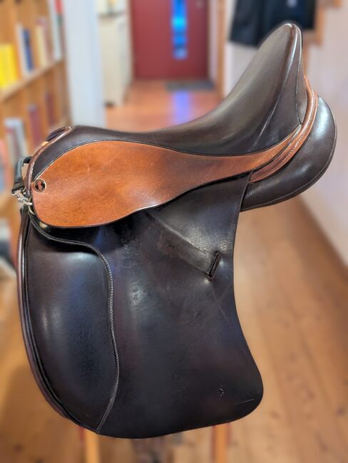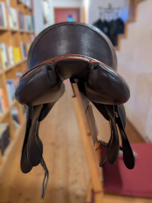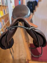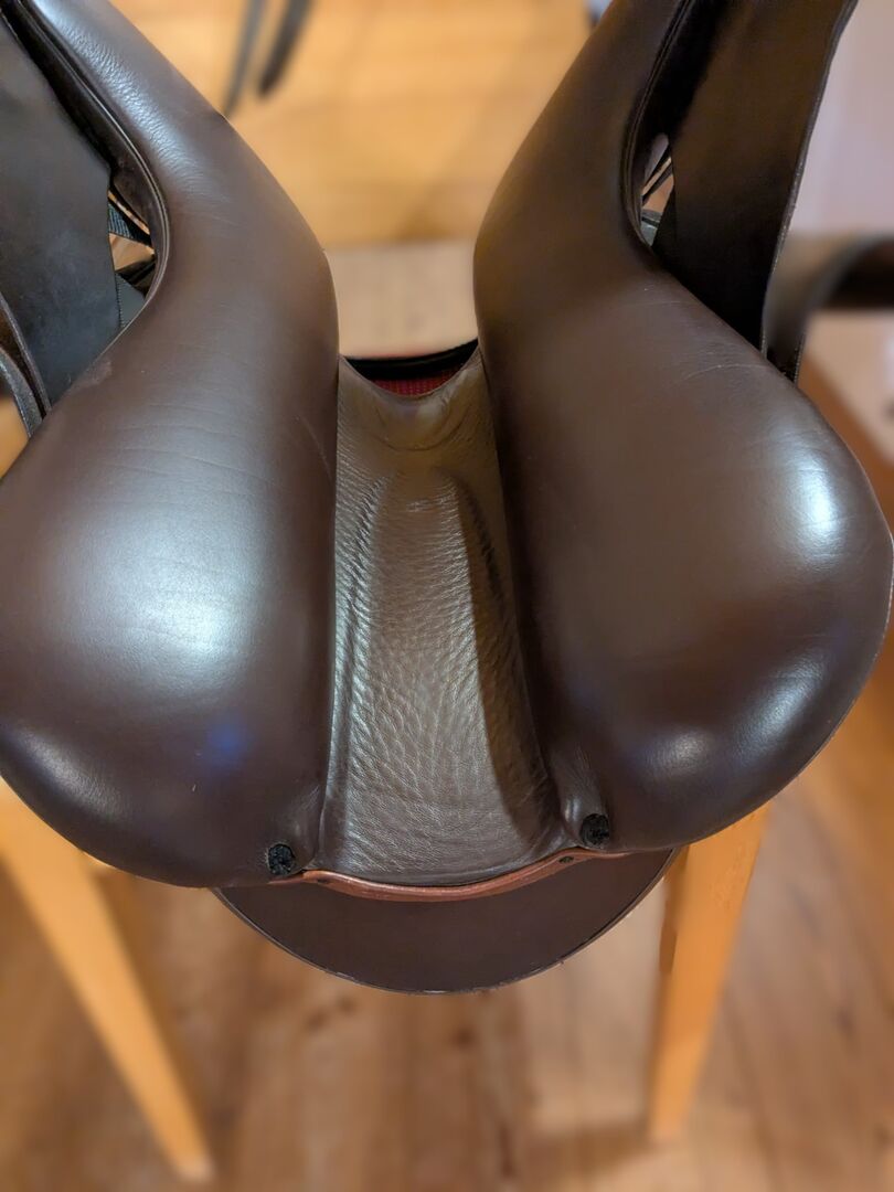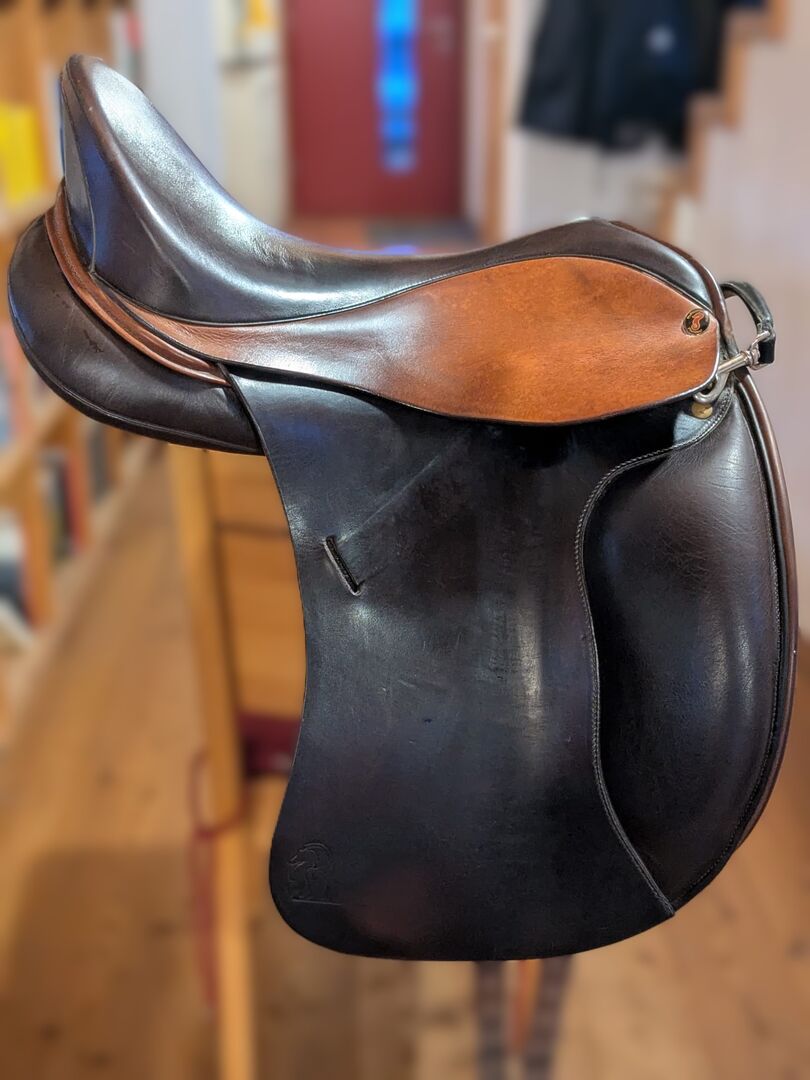 Siodło ujeżdżeniowe Philimar - Siodło ujeżdżeniowe Philimar w bardzo dobrym stanie, średniokomorowe, rozmiar siedziska 17,5 cala, średnio głębokie, kolor mokka-koniak.