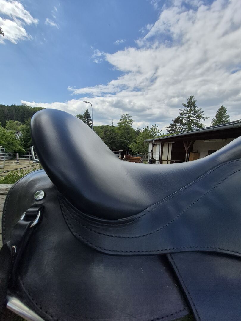 Siodło jest naprawdę bardzo wygodne i nawet po 4 godzinach jazdy w terenie nadal mogłem wygodnie siedzieć bez bólu pośladków. Zostało zamontowane na okrągło-żebrowym Lewitzerze o krótkim grzbiecie i wysokości 1,49 metra.