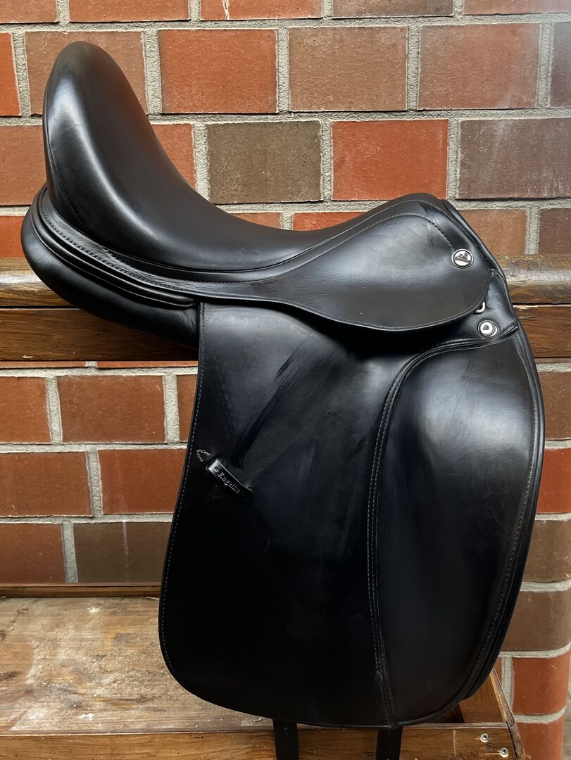 Siodło ujeżdżeniowe Prestige D2 Zerro D w kolorze czarnym. - Siodło ujeżdżeniowe Presige D 2 Zero D, rozmiar siedziska M, posiada małe zadrapanie na prawej stronie. Bardzo wygodne. Pomosty na rzepy