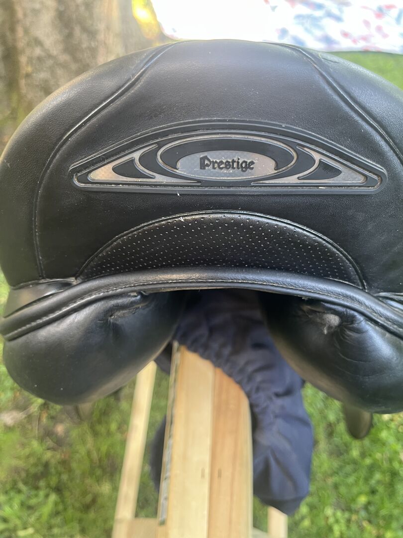Siodło ujeżdżeniowe Prestige Helen 17" KW33 - Siodło jest w bardzo dobrym stanie z niewielkimi oznakami zużycia, patrz zdjęcia. Skóra jest bardzo zadbana, siodło było bardzo mało używane.