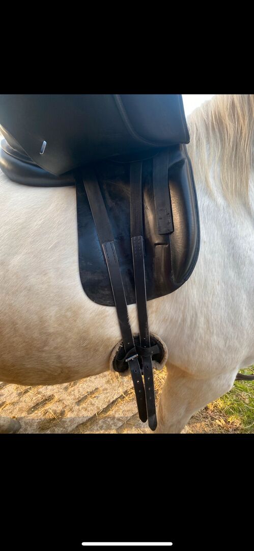 Siodło ujeżdżeniowe Prestige Hippos Dressage 17/33 - Prestige Hippos Dressage (młodsza siostra Top Dressage) 17 cali, 33 komory, szeroki kanał grzbietowy i panele klinowe - regulowane na zimno na miejscu i w bardzo dobrym stanie! Paski od popręgu są wycentrowane inaczej niż zwykle, ale można to oczywiście bez problemu zmienić. Jest naprawdę dobrze utrzymany i nie ma prawie żadnych śladów użytkowania! Zostało ponownie wyściełane kilka miesięcy temu i jest super miękkie! Siodło jest idealne dla koni z impulsem i wyższym kłębiem. Jesteś cudownie blisko konia i masz naprawdę ładne, głębokie siedzisko. Niestety nie pasuje na moją klacz. Klapa siodła jest dostępna. Rok produkcji 2003 (czerwony guzik)