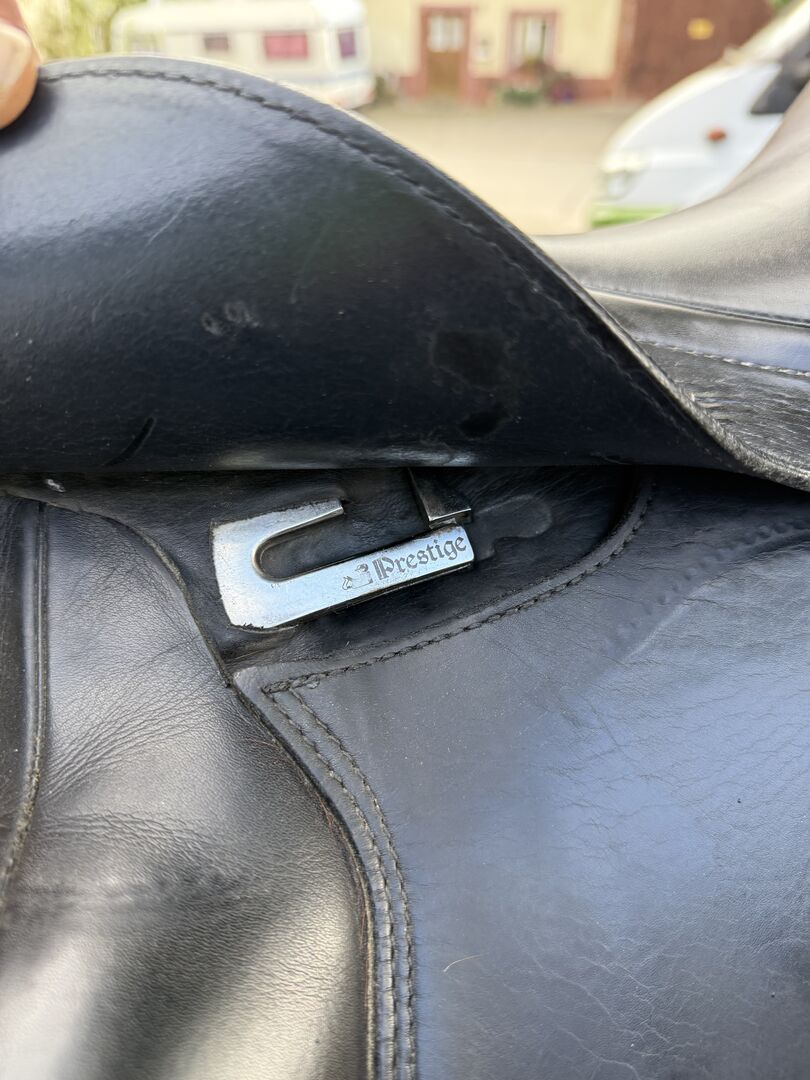 Siodło ujeżdżeniowe Prestige LC 17/35 lub 17/34 - Mam na sprzedaż siodło ujeżdżeniowe Prestige LC. 17/35 Kupiłam je z drugiej ręki, bo bardzo mi się podoba. Niestety nie pasuje na moją klacz Freibergera. Ma małe dziwactwo na tylnym łęku.