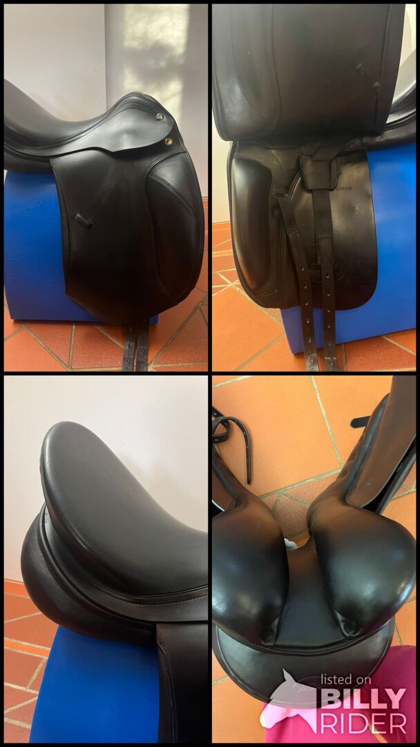 Siodło ujeżdżeniowe Prestige Milano - Oferuję siodło ujeżdżeniowe Prestige "Milano" 17/32, o powierzchni styku ok. 48 cm. Siodło kupiłam sama od rymarza w 2019 roku, ale w tym czasie było na koniu maksymalnie 30 razy, ponieważ niestety nie jestem już w stanie jeździć na mojej klaczy w siodle ze względu na jej wiek. W rezultacie siodło jest w bardzo dobrym stanie, ma niewielkie ślady użytkowania, ale ze względu na dobrą opiekę są one bardzo nieliczne i prawie niewidoczne. Siodło było regularnie traktowane środkiem do pielęgnacji siodeł Prestige i zawsze przechowywane w suchym miejscu, co oczywiście przyniosło mu wiele dobrego. Siodło jest super wygodne i czujesz się naprawdę swobodnie na arenie i w terenie. Więcej zdjęć dostępnych na życzenie!