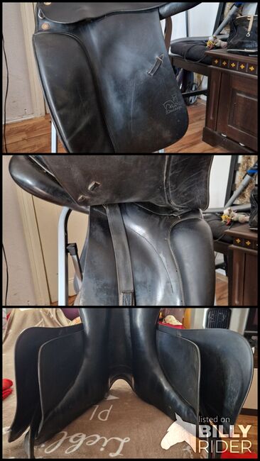 Siodło ujeżdżeniowe Prestige Top Dressage KW 34 - PILNE!!! Sprzedaję moje bardzo zadbane siodło ujeżdżeniowe Prestige, model "Top Dressage". Właśnie zostało sprawdzone przez rymarza i jest w dobrym stanie, ale niestety nie pasuje już na moją klacz. Siodło jest bardzo wygodne i świetnie się w nim siedzi. Szerokość łęku wynosi 34, ale może być również regulowana przez rymarza. Siodło było założone na szczupłą klacz oldenburską. Rozmiar siedziska: 17 cali. Jeśli jesteś zainteresowany, mogę również dostarczyć czarną podkładkę z jagnięcej skóry od Harry's Horse i pokrowiec na siodło od Prestige za 40 euro. Podkładka ma rok i nadal jest miła i miękka.