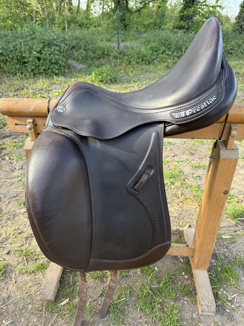 Siodło ujeżdżeniowe Prestige Venus Style 17" / 34 - Na sprzedaż moje zadbane siodło ujeżdżeniowe Prestige Venus Style w kolorze tytoniowego brązu. Niestety nasza klacz odeszła i dlatego sprzedaję siodło, które było bardzo mało używane.
