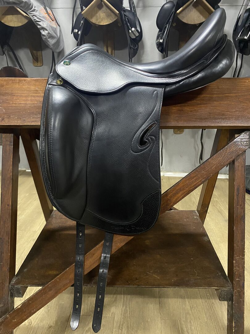 Siodło ujeżdżeniowe Prestige w świetnym stanie! - Prestige "Passion K" na sprzedaż. - Bardzo dobrze utrzymany - Rozmiar siedzenia: 17" - Szerokość wpustu: 34 (średni/szeroki) - Głębokie siedzisko i duży blok kolanowy do podparcia jeźdźca - Monoflap umożliwia bliski kontakt - Niewielka waga - W zestawie z pokrowcem - Nowa cena €2,900 teraz €1,900