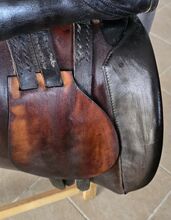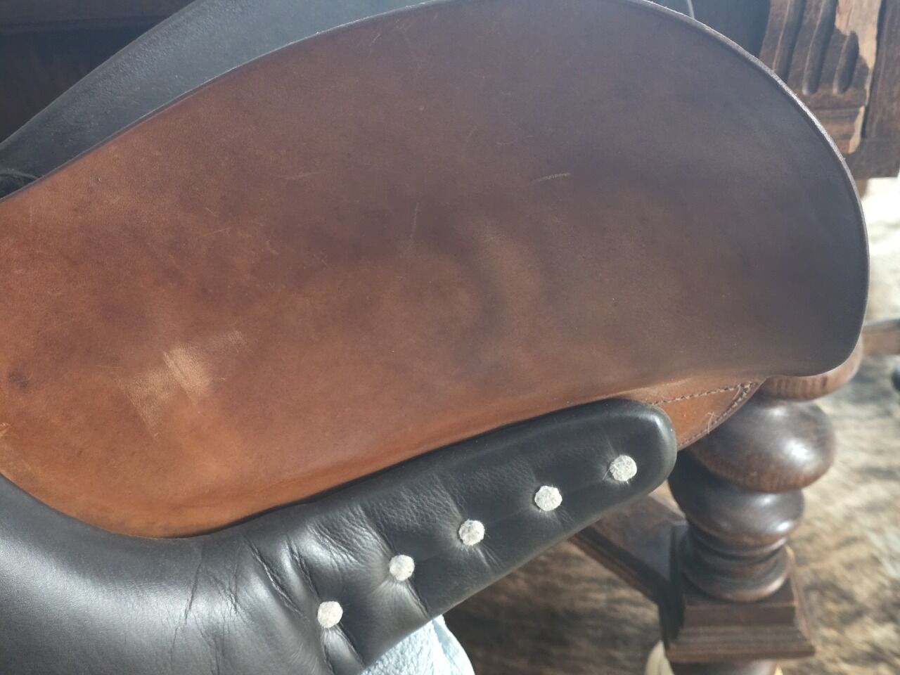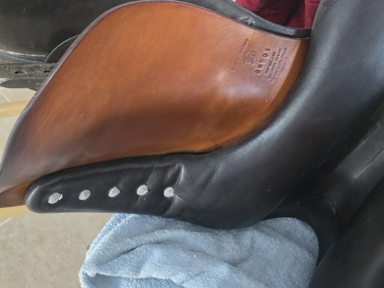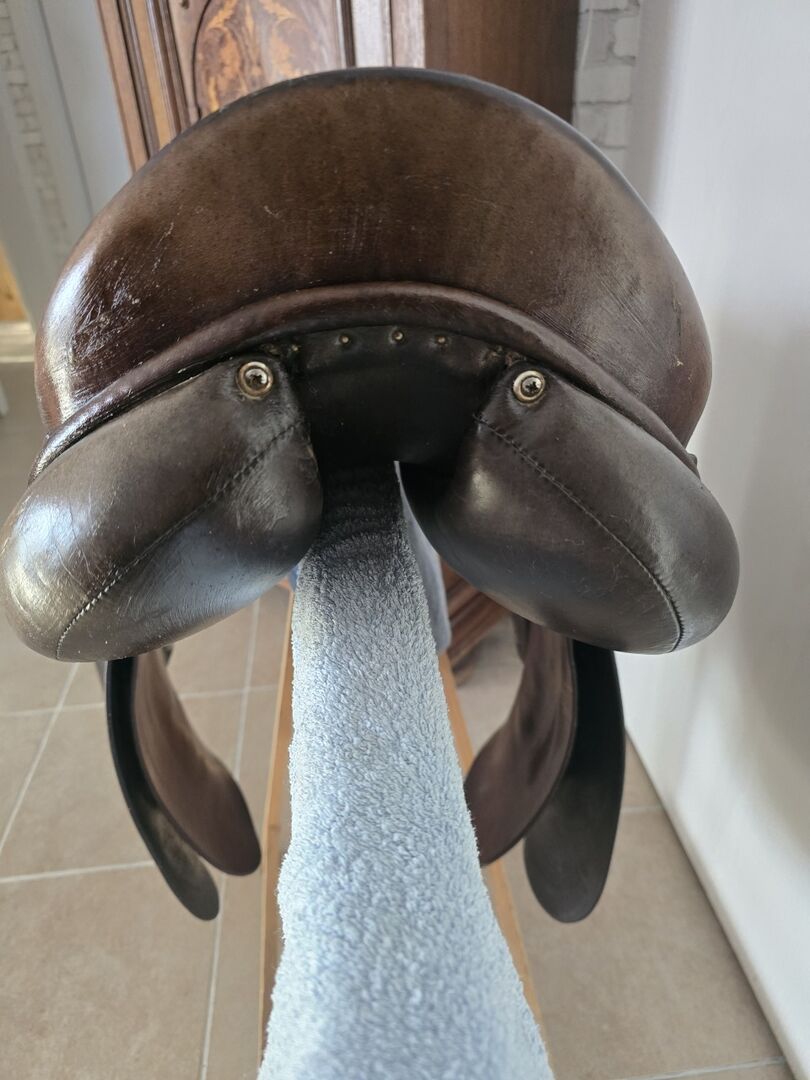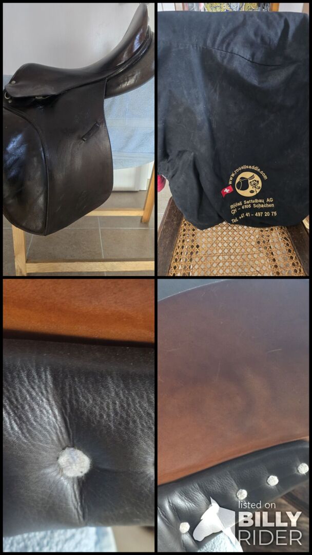 Siodło ujeżdżeniowe Röösli (CH) - Siodło ujeżdżeniowe marki Röösli (Szwajcaria), zadbane i w dobrym stanie, z oznakami zużycia (patrz zdjęcia). Siodło było regularnie sprawdzane przez firmę Röösli i w razie potrzeby remontowane. Miękka i elastyczna skóra. Siodło było używane dla Lusitano. Rozmiar nie jest na nim zapisany, ale zawsze miałem między 17 a 17,5. Brak dalszych akcesoriów, z wyjątkiem pokrowca ochronnego. Siodło jest sprzedawane, ponieważ koń cieszy się emeryturą. Siodło można wypróbować, jeśli zainteresowana strona odbierze je tutaj i wpłaci depozyt w wysokości 200 euro. Zostanie wysłane tylko przy zakupie, ale nie ma gwarancji ani zwrotu, jest to czysto prywatna sprzedaż, a sprzedawca działa zgodnie z najlepszą wiedzą i przekonaniem, z wyłączeniem gwarancji za wady materiałowe. Płatność gotówką przy odbiorze lub PayPal przy wysyłce, kupujący płaci za wysyłkę.