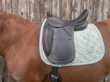 Siodło ujeżdżeniowe "Romulus" Euroriding Medium - Bardzo eleganckie, mało używane siodło, prawie jak nowe. Dostępna oryginalna faktura rymarska. Szczególnie nadaje się dla krótkich koni.