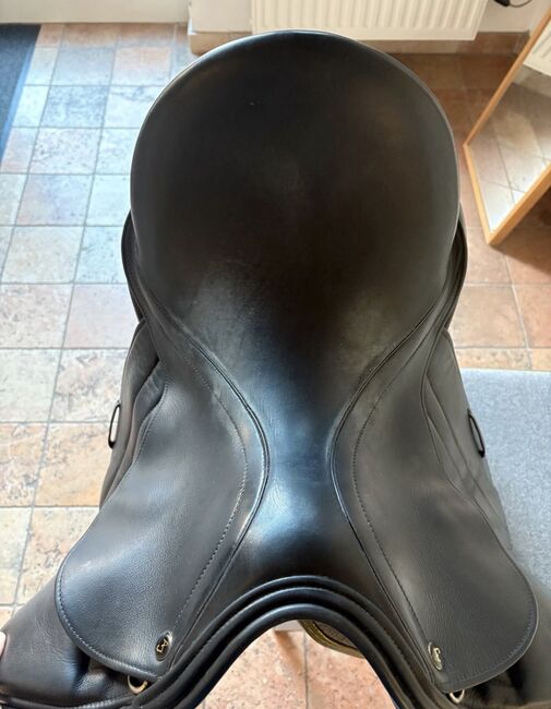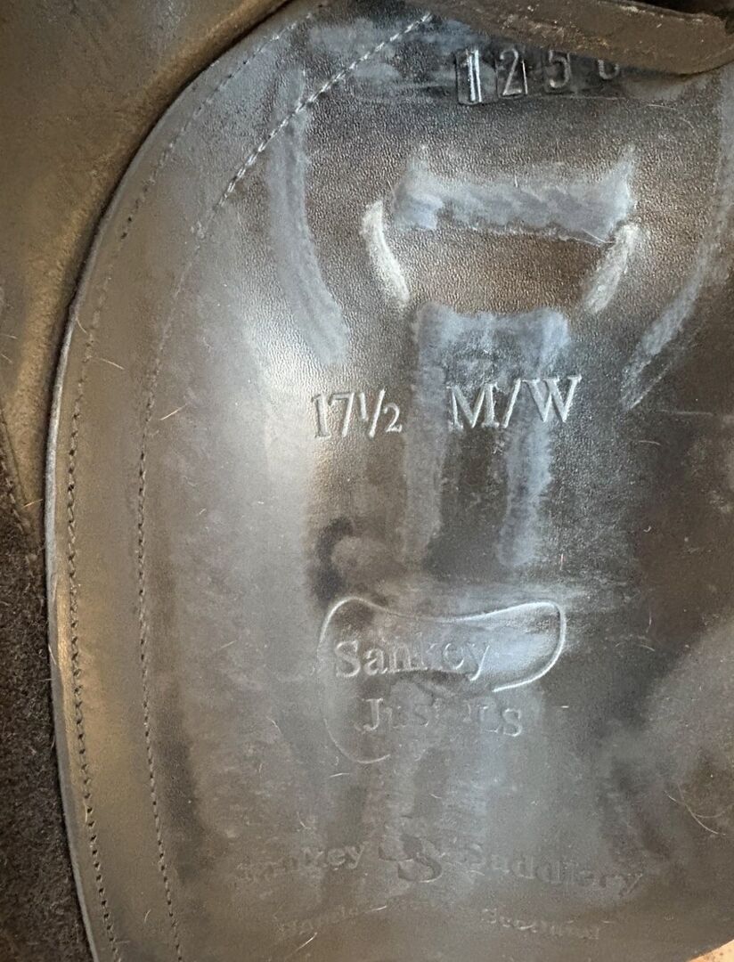 Siodło ujeżdżeniowe Sankey by AJ, 17,5 cala - Sprzedam siodło ujeżdżeniowe marki Sankey by Anke Just. 17 1/2 cala i szerokość komory M/W. Siodło zawsze było zadbane, nasmarowane i przechowywane z podkładką pod siodło, która jest w zestawie. Jak widać na zdjęciu, siedzisko nosi ślady zużycia.