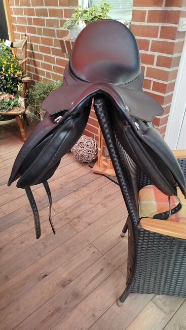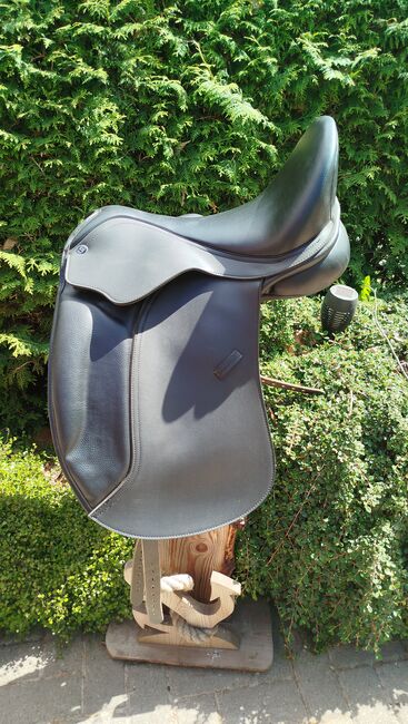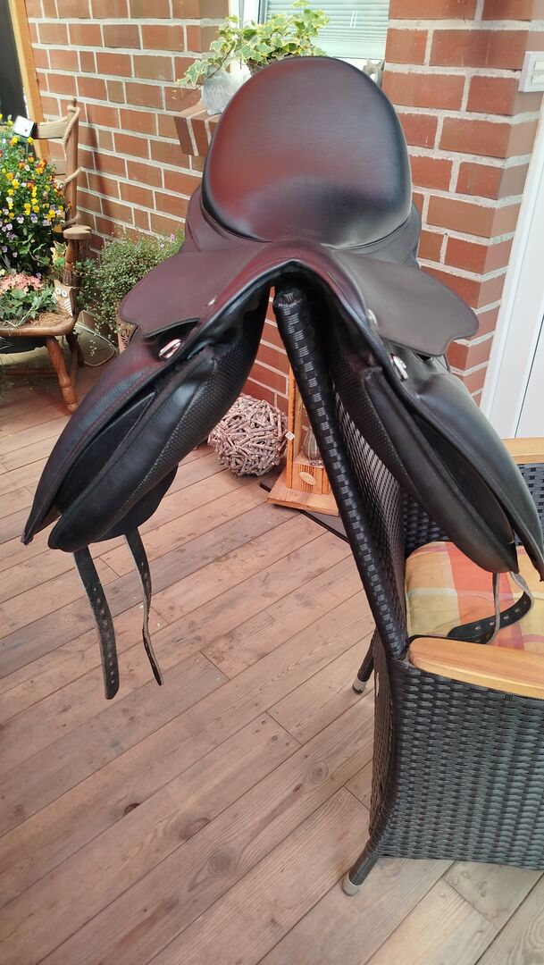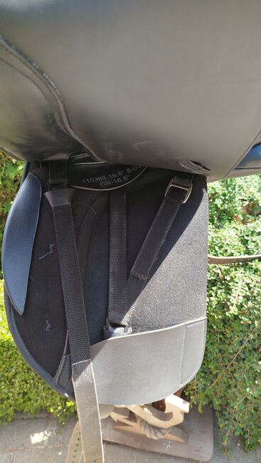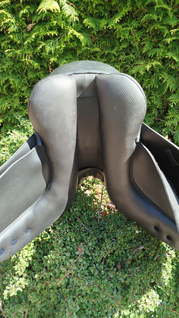 Siodło ujeżdżeniowe Showmaster 16,5 - Sprzedaję moje ledwo używane siodło ujeżdżeniowe Showmaster, ponieważ mój kucyk przeszedł na emeryturę. Siodło jest wyposażone w anatomiczne głębokie siedzisko, regulowane rolki kolanowe, wymienne płyty przełykowe, powierzchnia styku wynosi 47 cm. Siodło jest świetne dla krótkich grzbietów kucyków Siodło można zabrać na próbę z depozytem ceny zakupu.