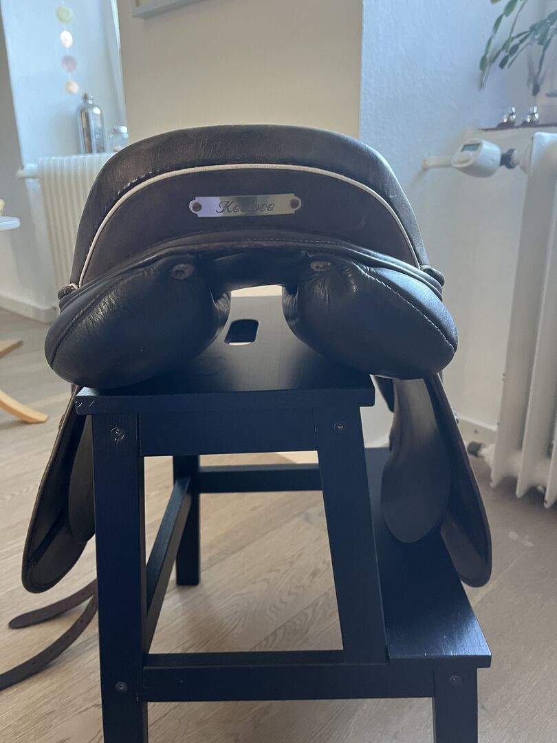 Siodło ujeżdżeniowe Siodło islandzkie Maxflex Emilio - Kupiłam to siodło z drugiej ręki od rymarza w styczniu za 890 € z poduszkami kolanowymi. Jest bardzo odpowiednie dla krótkich grzbietów, na przykład koni islandzkich. Mój kucyk jeździł w nim bardzo dobrze, ale niestety mogłem go użyć maksymalnie 10 razy, ponieważ mój kucyk nie nadaje się już do jazdy ze względu na swój wiek. Mimo, że mają rozmiar 17'', noszę rozmiar 40 i mogłam idealnie usiąść w siodle. Wraz z siodłem kupiłam rzepy bananowe, które sprzedaję wraz z siodłem, ale nie są one pokazane na zdjęciach. Siodło jest bardzo przyjemne, ma bardzo miękką skórę.