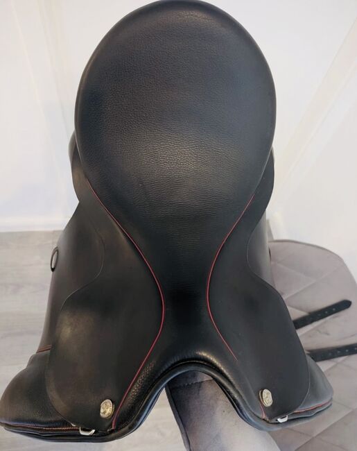Siodło ujeżdżeniowe Sommer Diplomat DS charakteryzuje się uniwersalnym dopasowaniem i doskonałymi możliwościami adaptacji. Dzięki powierzchni styku wynoszącej zaledwie 46 cm i szerokości komory 31,5 cm stanowi idealną podstawę dla wszystkich typów koni. Siodło ma regulowane na zimno wpusty, normalną klapę siodła, panele ochronne z miękkim wełnianym wypełnieniem i głębokie siedzisko. Długi popręg i flexus, uzupełnione dodatkami, takimi jak lamówki i szwy w kolorze czerwonym, oferują zarówno styl, jak i funkcjonalność.
