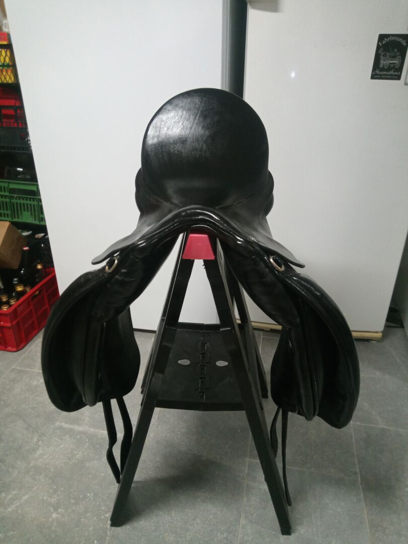 Siodło ujeżdżeniowe Spirig - Bardzo krótkie siodło dla koni okrągłych z huśtawką w tylnej części, bardzo szeroka komora, regulowane, leży na Norikerze, bardzo wygodne, wyściółka sprawdzona i w porządku, z powodu śmierci konia. Sprzedaż prywatna brak gwarancji lub rękojmi brak możliwości zwrotu lub wymiany