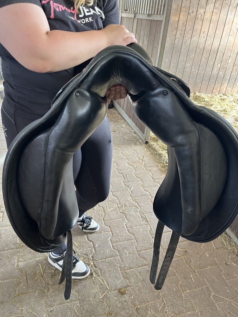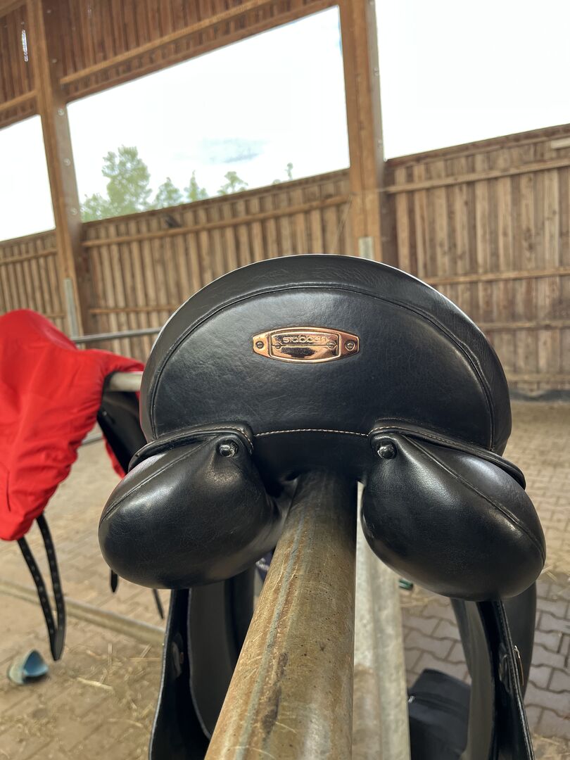 Siodło ujeżdżeniowe Stübben Aramis II 17.5 - Sprzedam siodło ujeżdżeniowe Stübben Aramis II w rozmiarze siedziska 17,5 cala i szerokości komory 30 cm. Siodło jest używane, ale bardzo dobrze utrzymane i w idealnym stanie. Było regularnie czyszczone, starannie przechowywane i jest gotowe do natychmiastowego użycia.