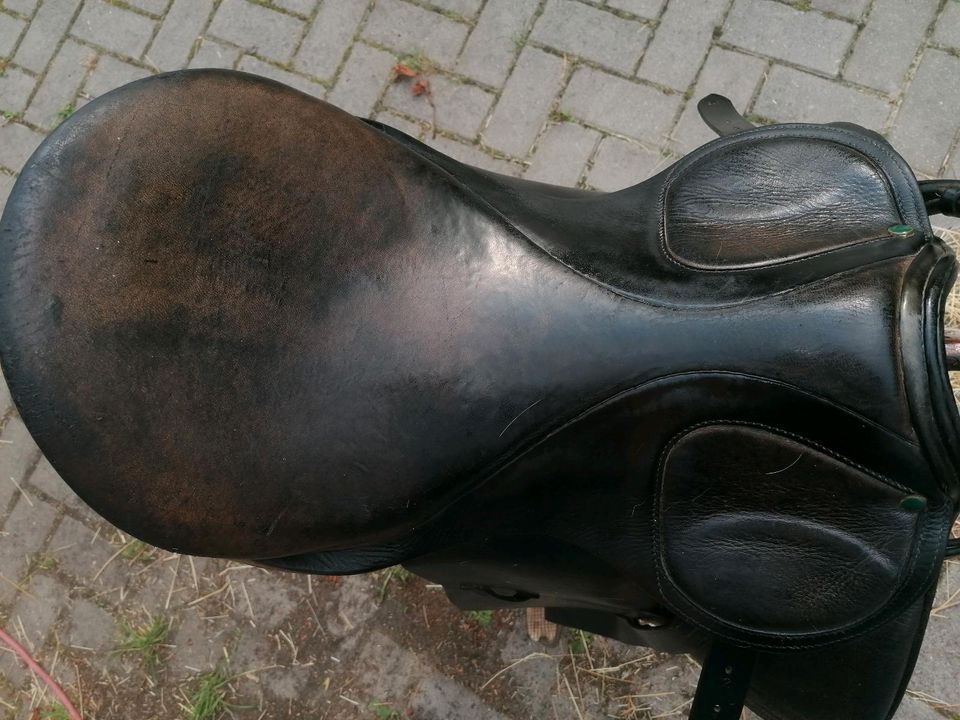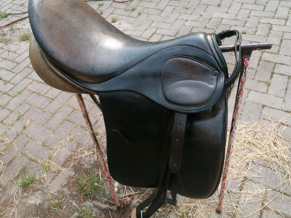 Siodło ujeżdżeniowe Stübben, zapoznanie z siodłem - Sprzedam starsze siodło Stübben. Potrzebuję miejsca w szafce na siodła. Używane dla klaczy hanowerskiej, dobre do przyzwyczajenia się do siodła.