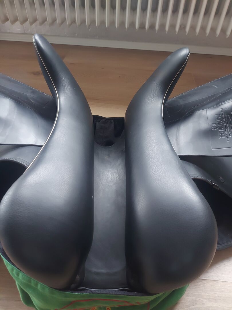 Sprzedaję moje Sommer Somero, 18 cali szerokość komory 33, było tylko trochę wyściełane. Siodło ma około 2 lat, kupiłam je z drugiej ręki około miesiąc temu. Od tego czasu rzadko było na koniu. Siodło było na klaczy kuca z prostym grzbietem, szerokimi ramionami i prawie żadnym kłębie. Bardzo łatwe w regulacji dzięki elastycznemu łękowi. Sprzedaję siodło tylko dlatego, że zsuwa się do przodu na ramię konia, o którym wspomniałem i nie znajduje żadnego wsparcia. Poza tym bardzo wygodne, nadaje się również do skoków dla małych skoczków. Bardzo łatwe do dopasowania do nogi jeźdźca dzięki klockom na rzepy. Pokrowiec na siodło w zestawie. Ślady pęknięcia widoczne tylko na dolnej klapie siodła, ze względu na buty jeździeckie, ale nie są zauważalne podczas jazdy.