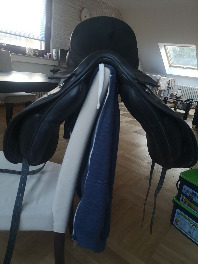 Siodło ujeżdżeniowe Thorowgood t6 na licytację - Sprzedaję siodło Thorowgood, ponieważ jest za długie dla mojego krótkiego Hafi. Wymienne przepusty (w zestawie czerwony i żółty). Ma dwie skazy, ale jest w dobrym stanie. Dobre jako pierwsze siodło, do przyzwyczajenia się. Zostanie sprzedany na licytację, ponieważ musi odejść (nie, nie pójdzie za 50€, ale jestem elastyczny).