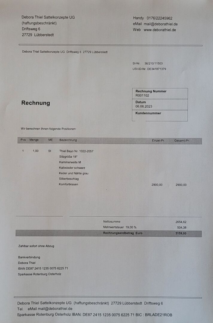 Siodło ujeżdżeniowe trekkingowe Thiel Bayo 18 cali jak nowe NP2900 - Sprzedam jak nowe czarne super wygodne siodło ujeżdżeniowe trekkingowe od Deborah Thiel - model Bayo w rozmiarze 18 cali. Kupione w czerwcu 2023 - zobacz fakturę!