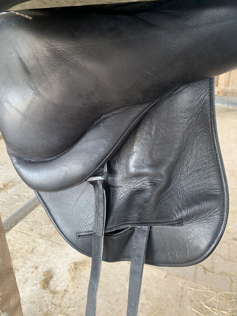 Siodło ujeżdżeniowe Wow - Sprzedaję siodło Wow. Siodło to posiada 4 komory powietrzne, dzięki czemu można je dopasować do 99% koni. Siedzisko wynosi 16,5-17", a krótkie klapy siodła oznaczają, że siodło może być również używane jako siodło skokowe/VS i jest dobrze dopasowane do krótszych nóg. Krótka powierzchnia styku jest szczególnie odpowiednia dla krótkich grzbietów koni. Drzewo siodła wykonane jest z karbonu, co sprawia, że siodło jest niezwykle lekkie i pozwala mu bardzo dobrze dopasować się do każdego ruchu konia. Panele powietrzne, które uniemożliwiają punktowy nacisk w przeciwieństwie do wełny, w połączeniu z karbonowym drzewem siodła bardzo dobrze wspierają zginanie wzdłużne konia. Siodło można łatwo dopasować na miejscu i dlatego zawsze siedzi jak siodło szyte na miarę!