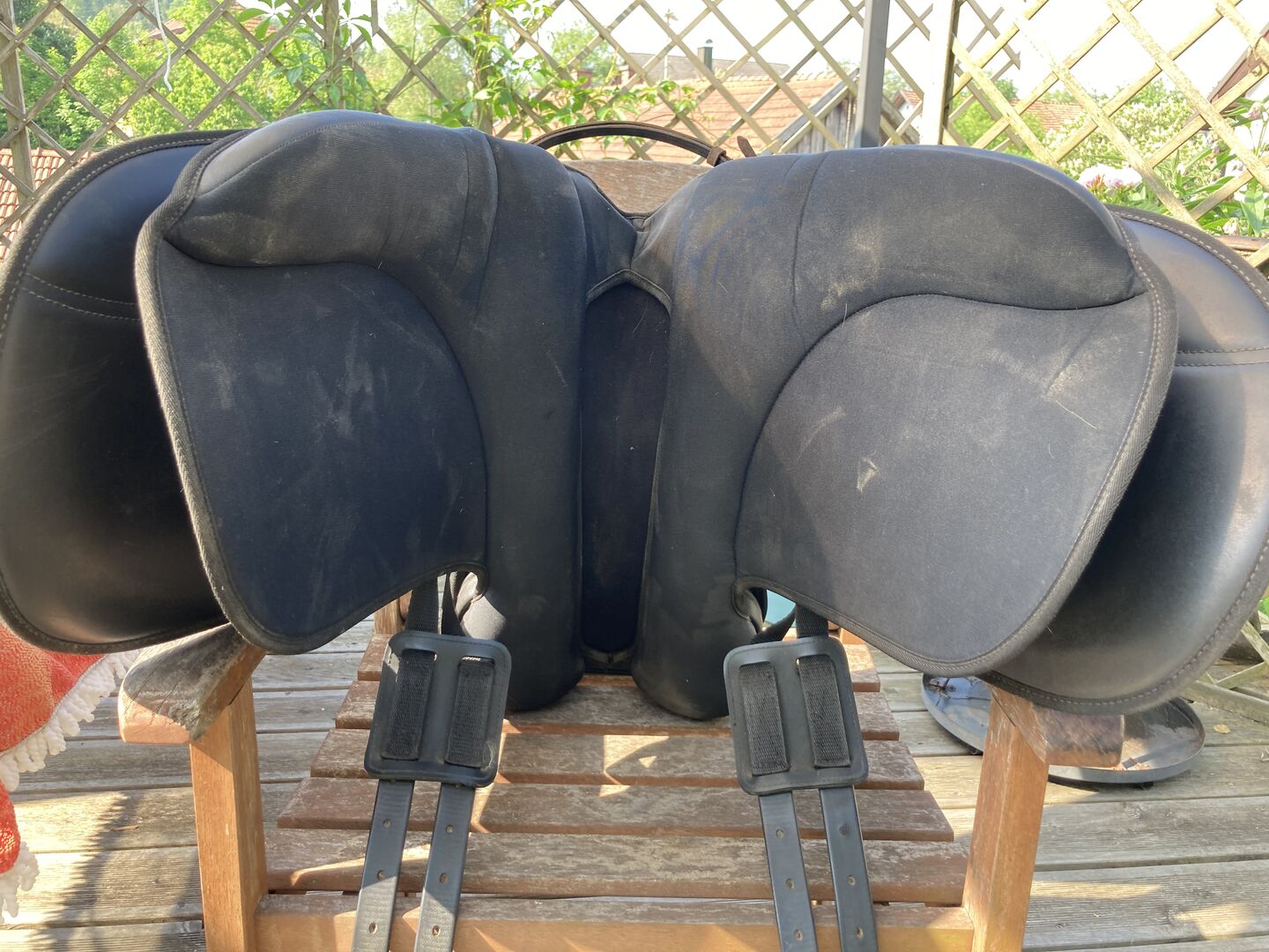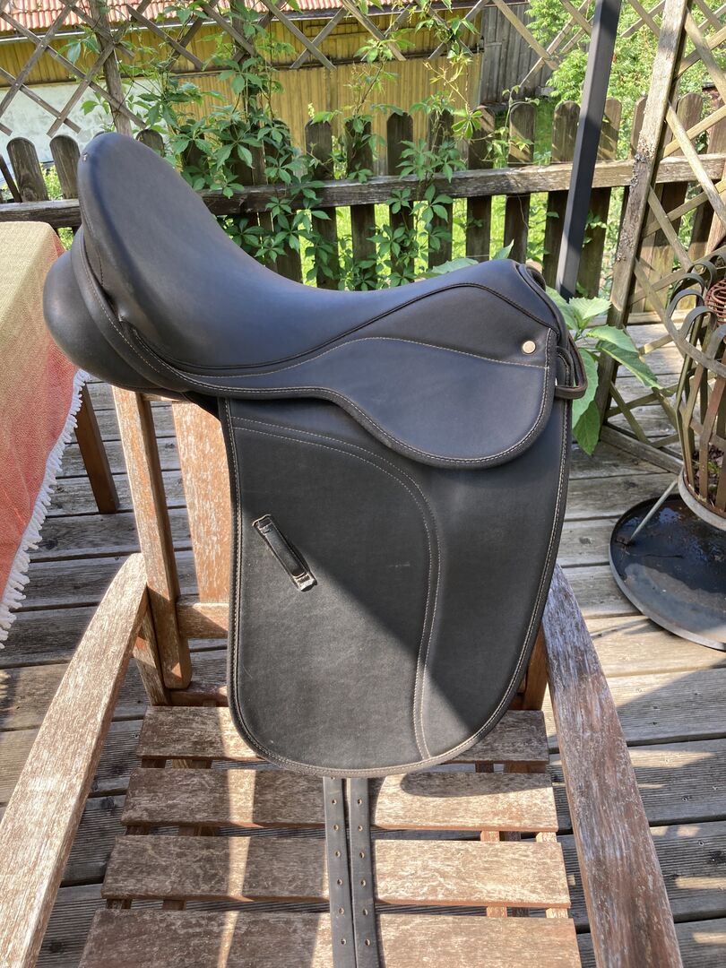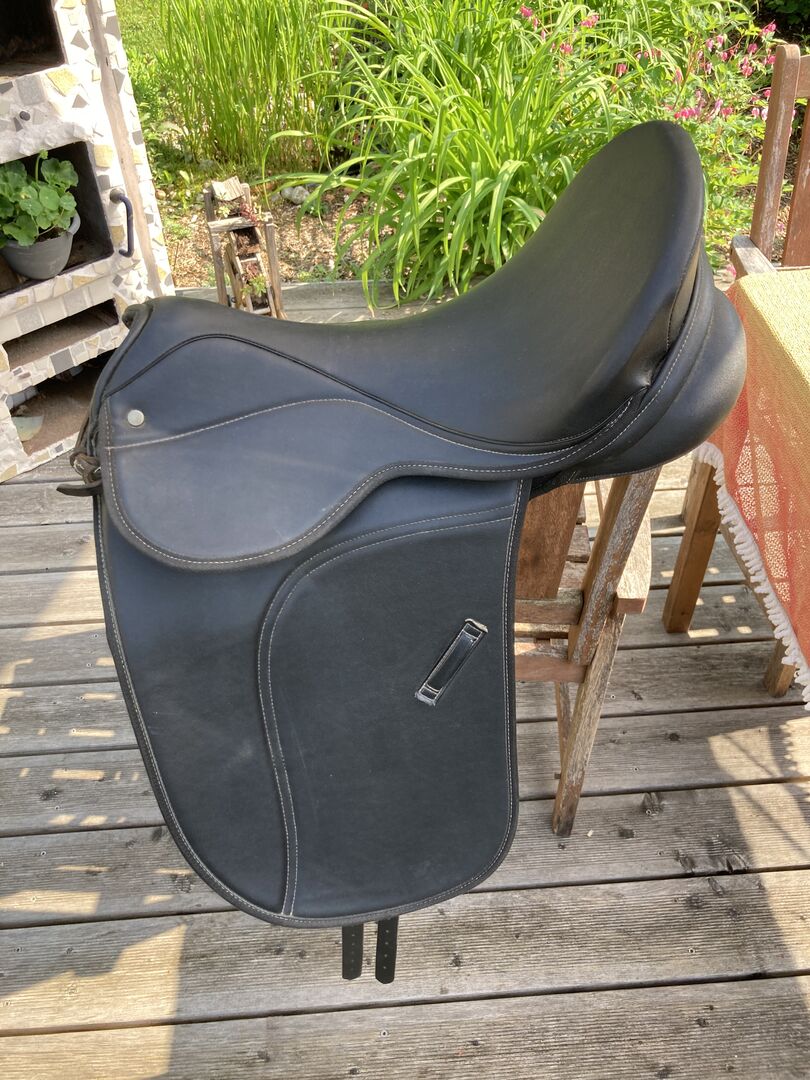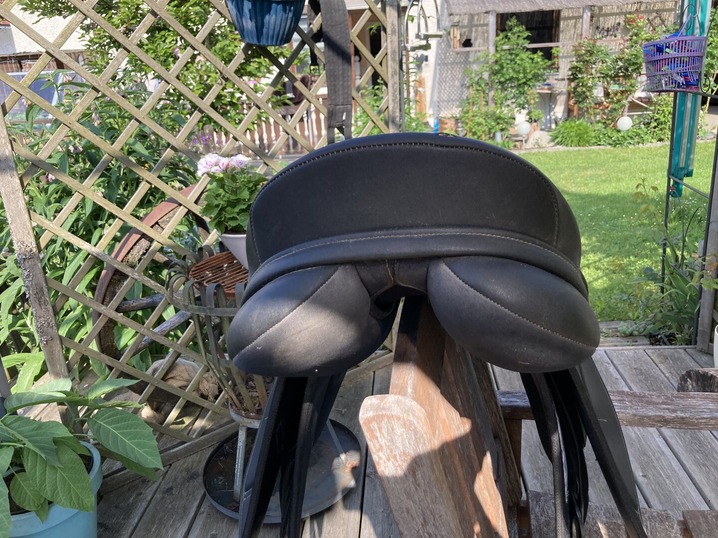 Siodło ujeżdżeniowe z flexem. Komory - Sprzedam mało używane siodło ujeżdżeniowe 17 - 17,5 cala. Siodło ma elastyczne komory i jest dobrze dopasowane. Niestety, nie używam go już, ponieważ przestawiłem się na jazdę westernową. Siodło kupiłam bez popręgu, strzemion i pasów. Dołączam wszystko, ponieważ nie mam już z tego żadnego pożytku.